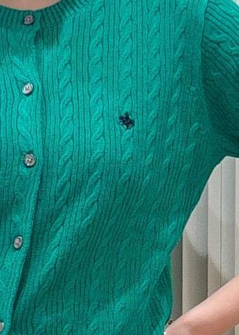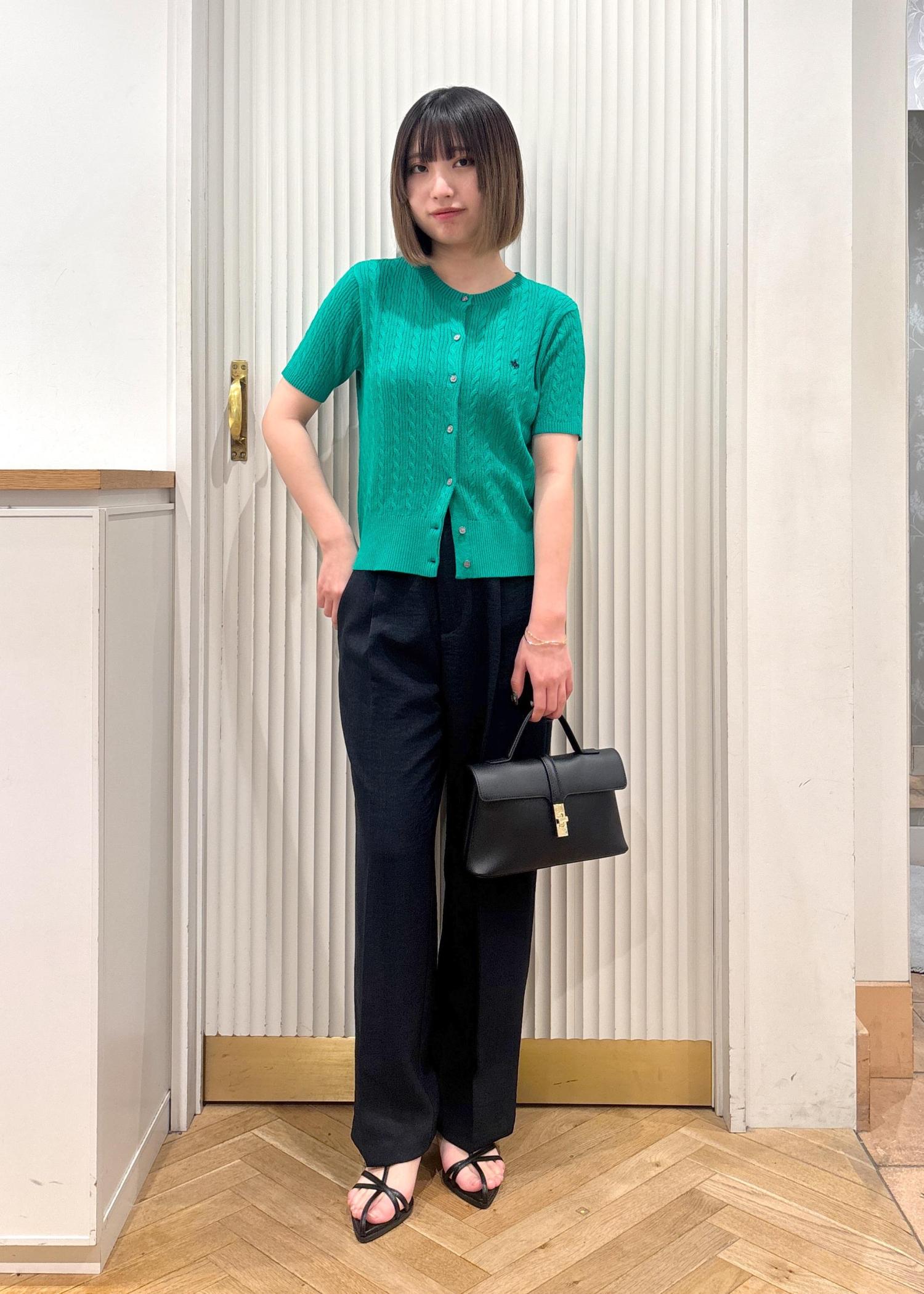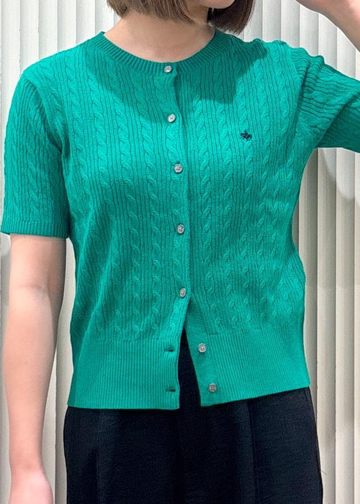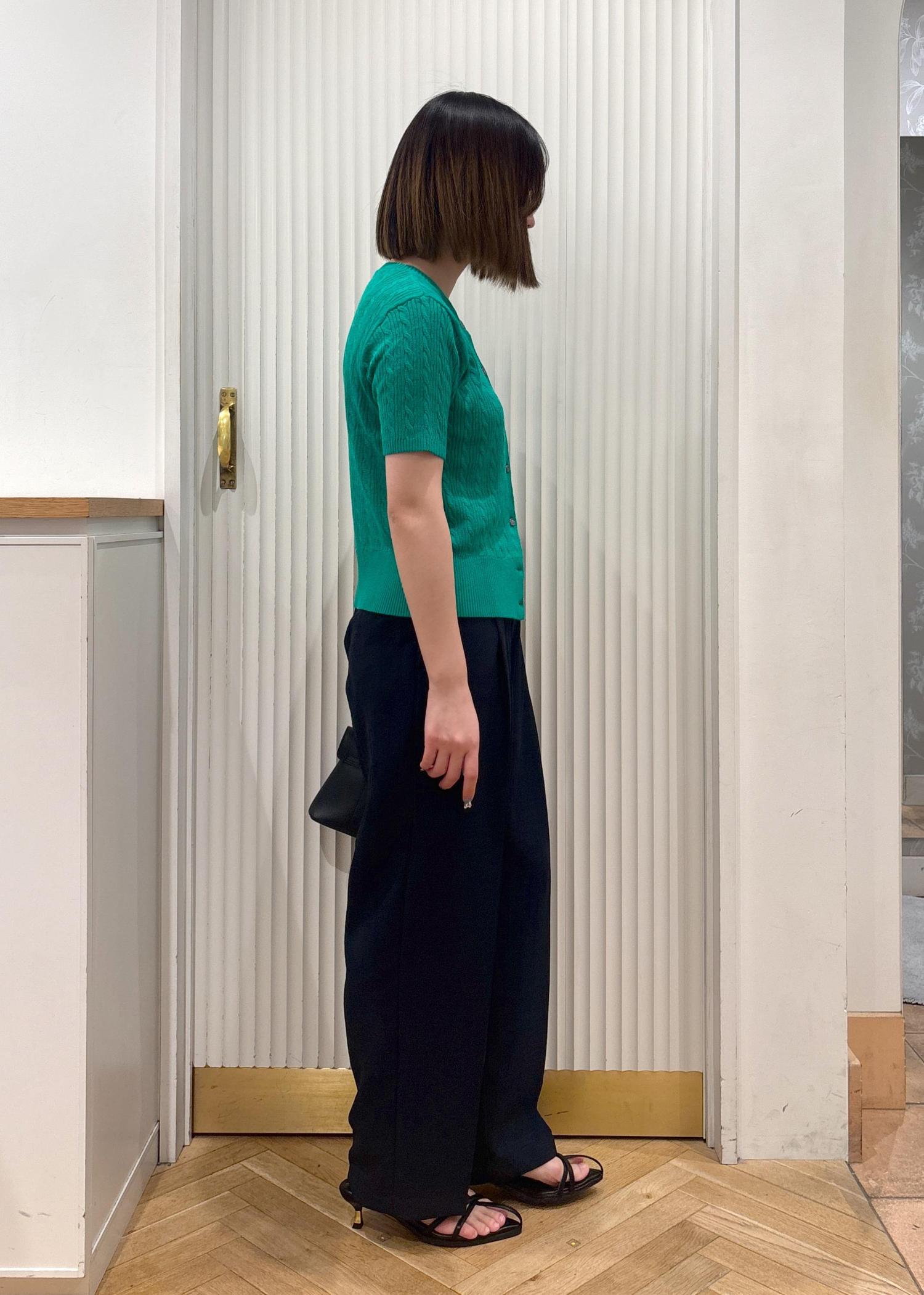 VIS【POLO BCS】VIS別注ハーフスリーブミニケーブルカーディガングリーン / F¥6,600レビュー153センチ着用で、ヒップにギリギリかかるかかからないかくらいの着丈でした。