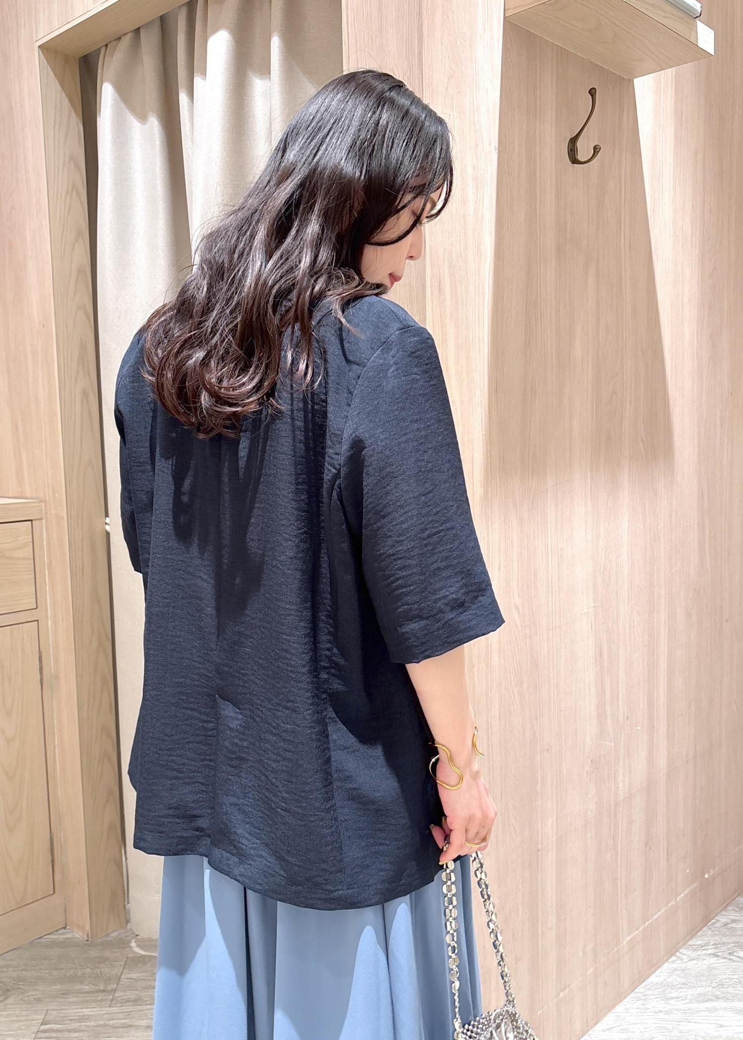 VIS【美easy】ハーフスリーブジャケット/セットアップ対応・洗えるネイビー / S¥7,909レビュー大人気のリネンライクシリーズの半袖ジャケットは、肘までの少し長めの袖丈で長いシーズンで着やすい1枚。