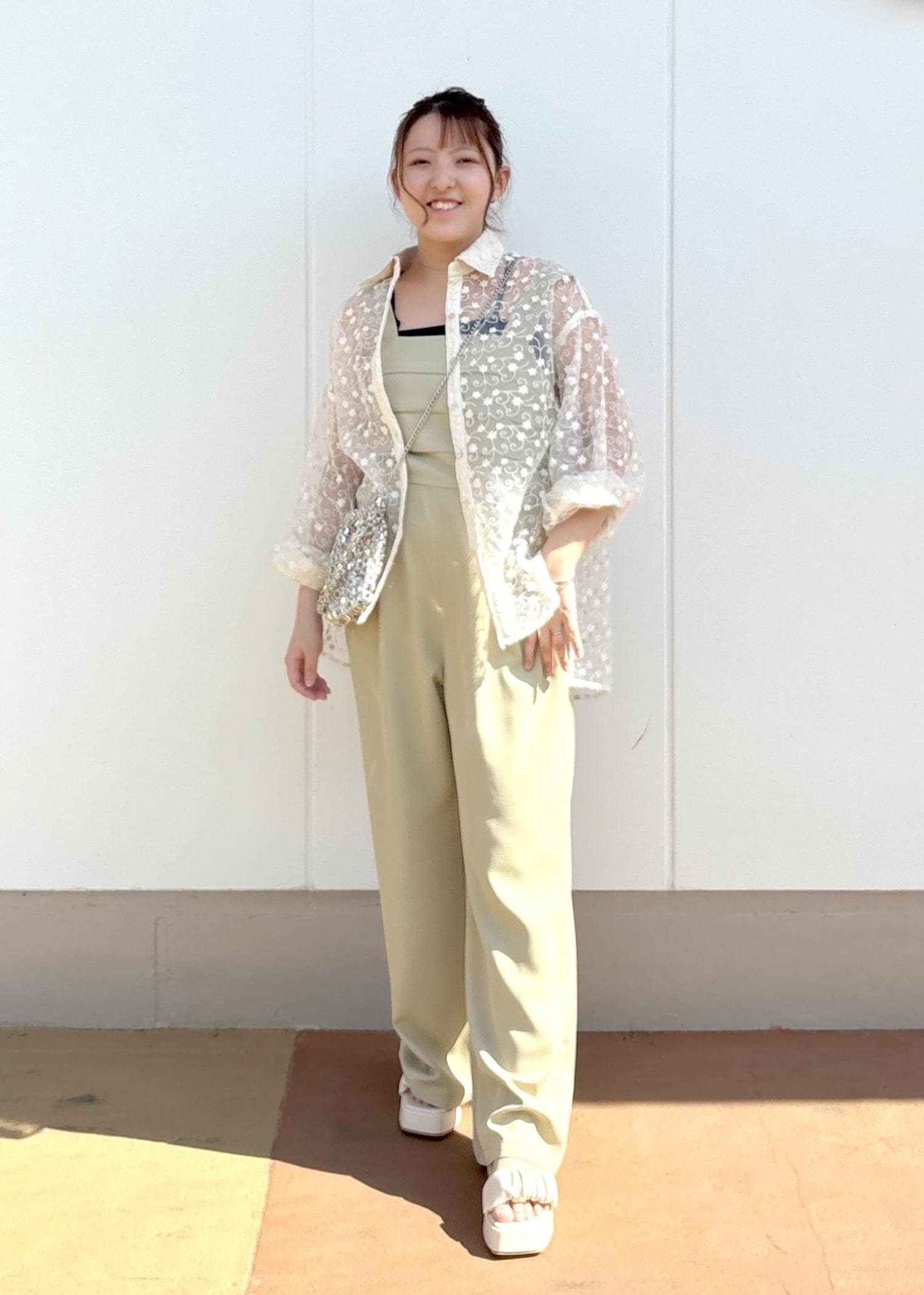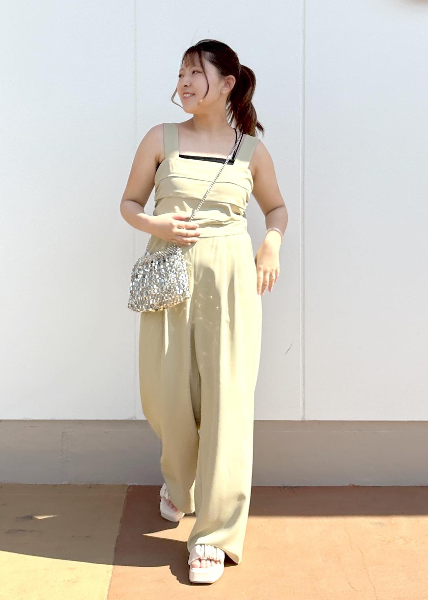アウトレットVISフロントタックデザインサロペット/オールインワンベージュ / F¥4,745レビュー長さが調節できオールインワンです!