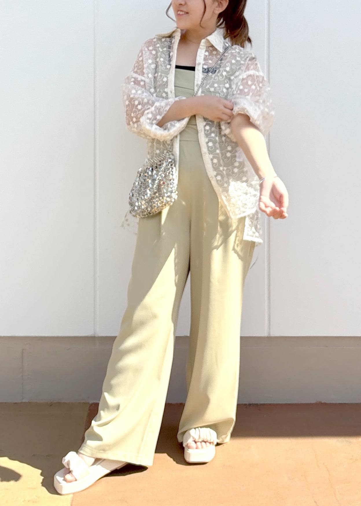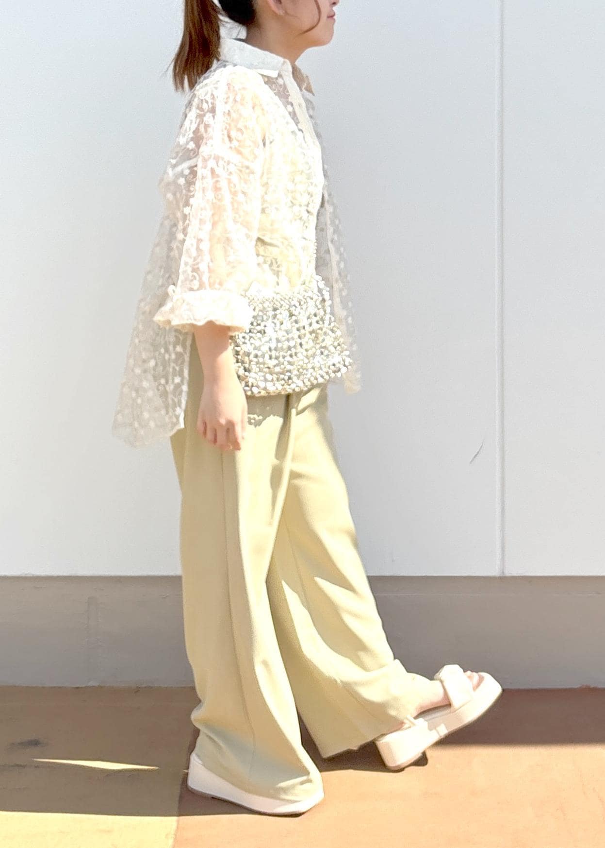 フラワーモチーフシャツは無地より少し固めの素材感です。