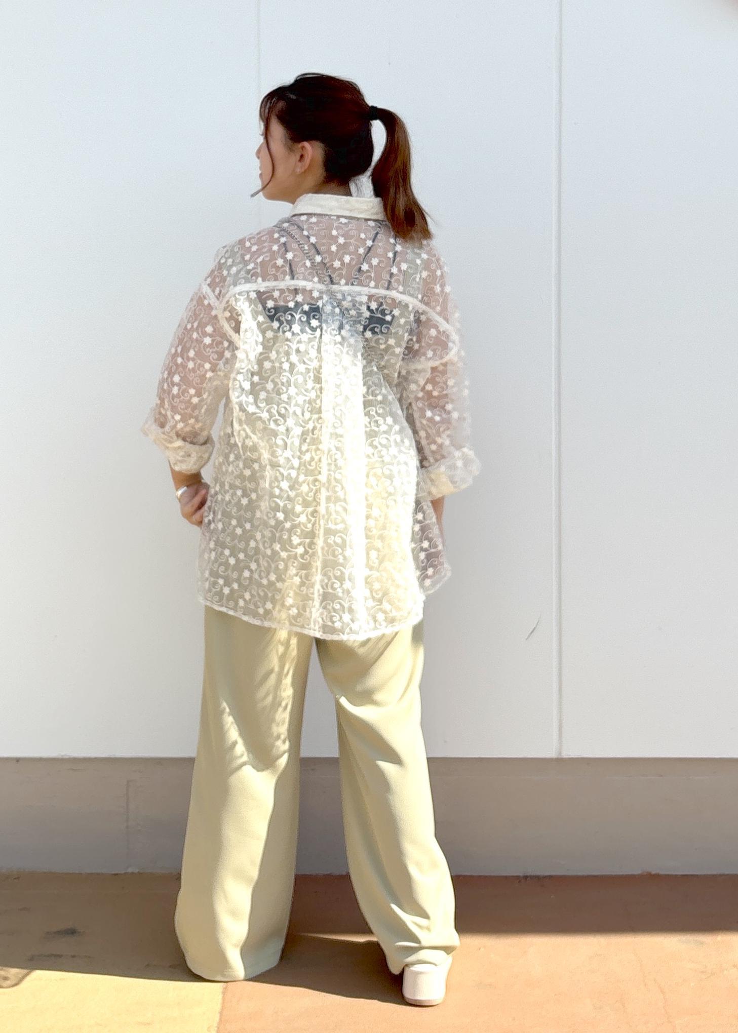 アウトレットVIS【洗える】アソートシアーシャツ(フラワー刺繍&無地)オフホワイト / F¥2,745レビュー毎年人気のシアーシャツ!