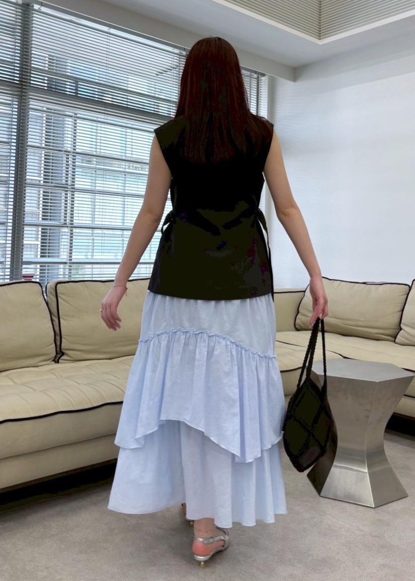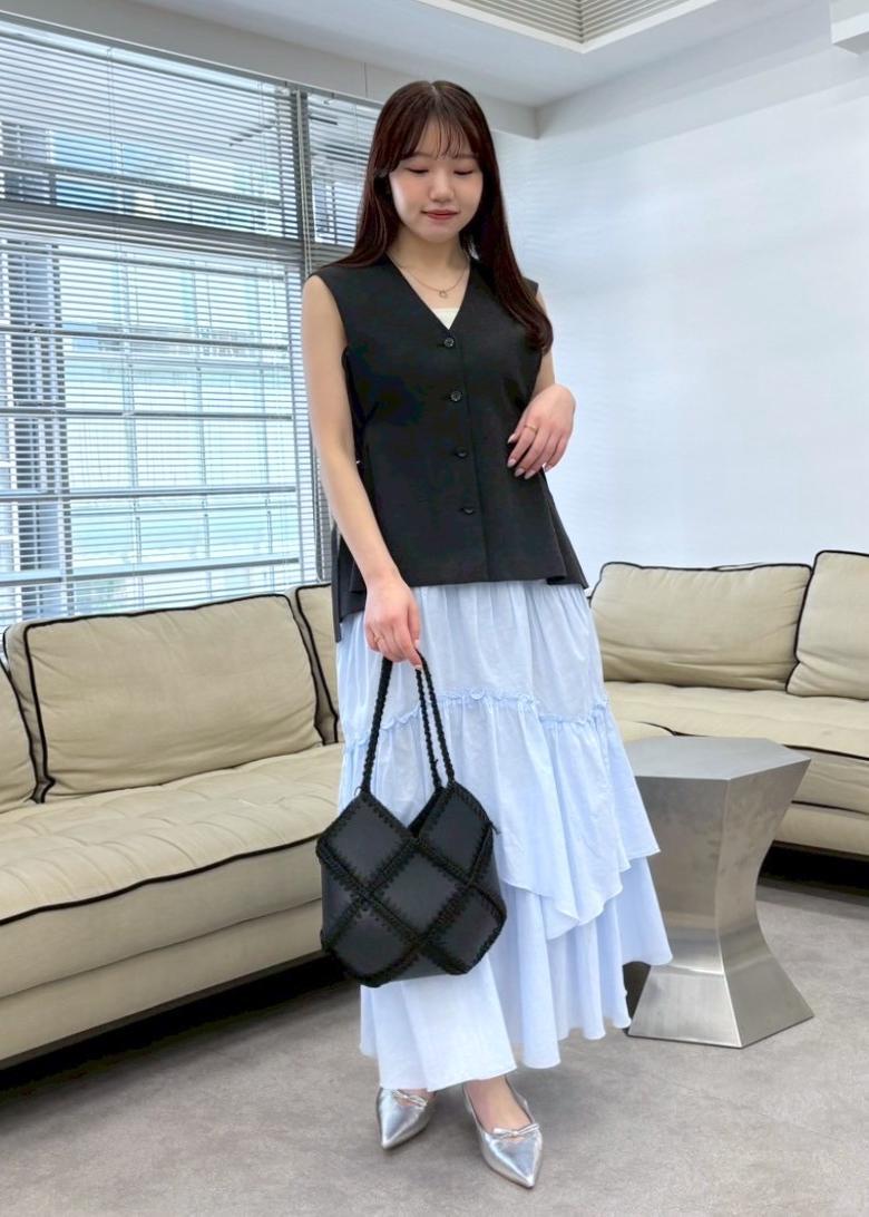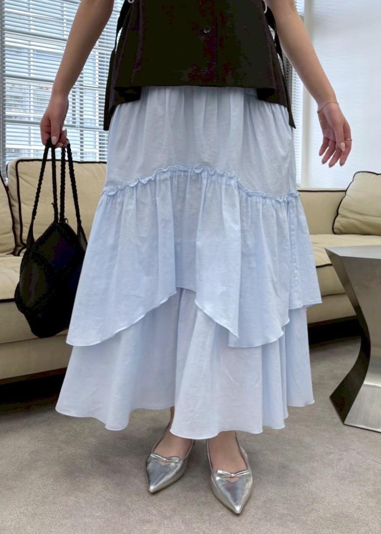 アイスブルーのティアードスカートで夏らしくヘルシーで爽やかな印象に◎