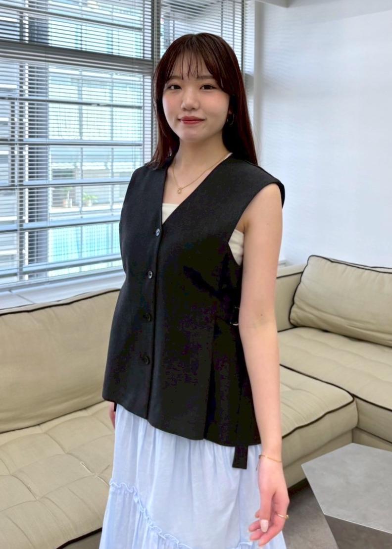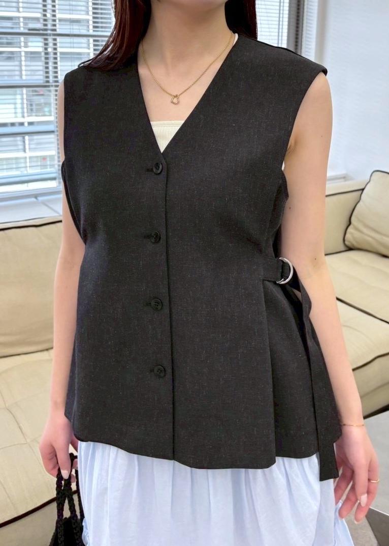 アウトレットVIS【セットアップ対応】サイドベルトフレアジレチャコール / F¥4,391レビューVネックのデザインですが、深過ぎず胸元の空き具合がちょうどいいです!