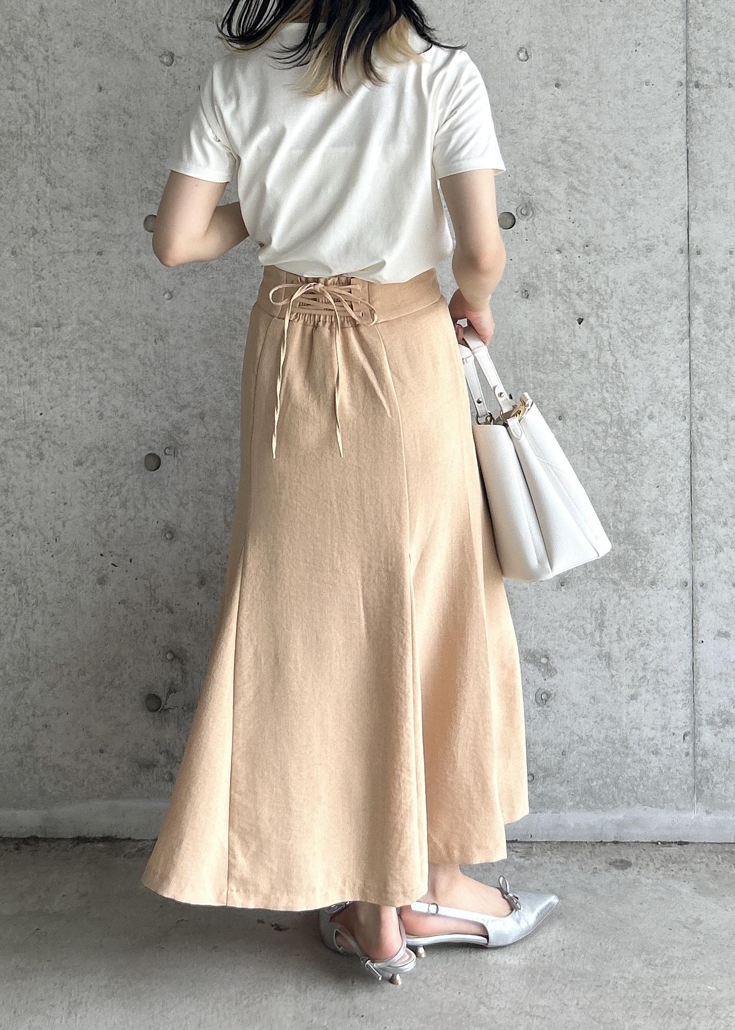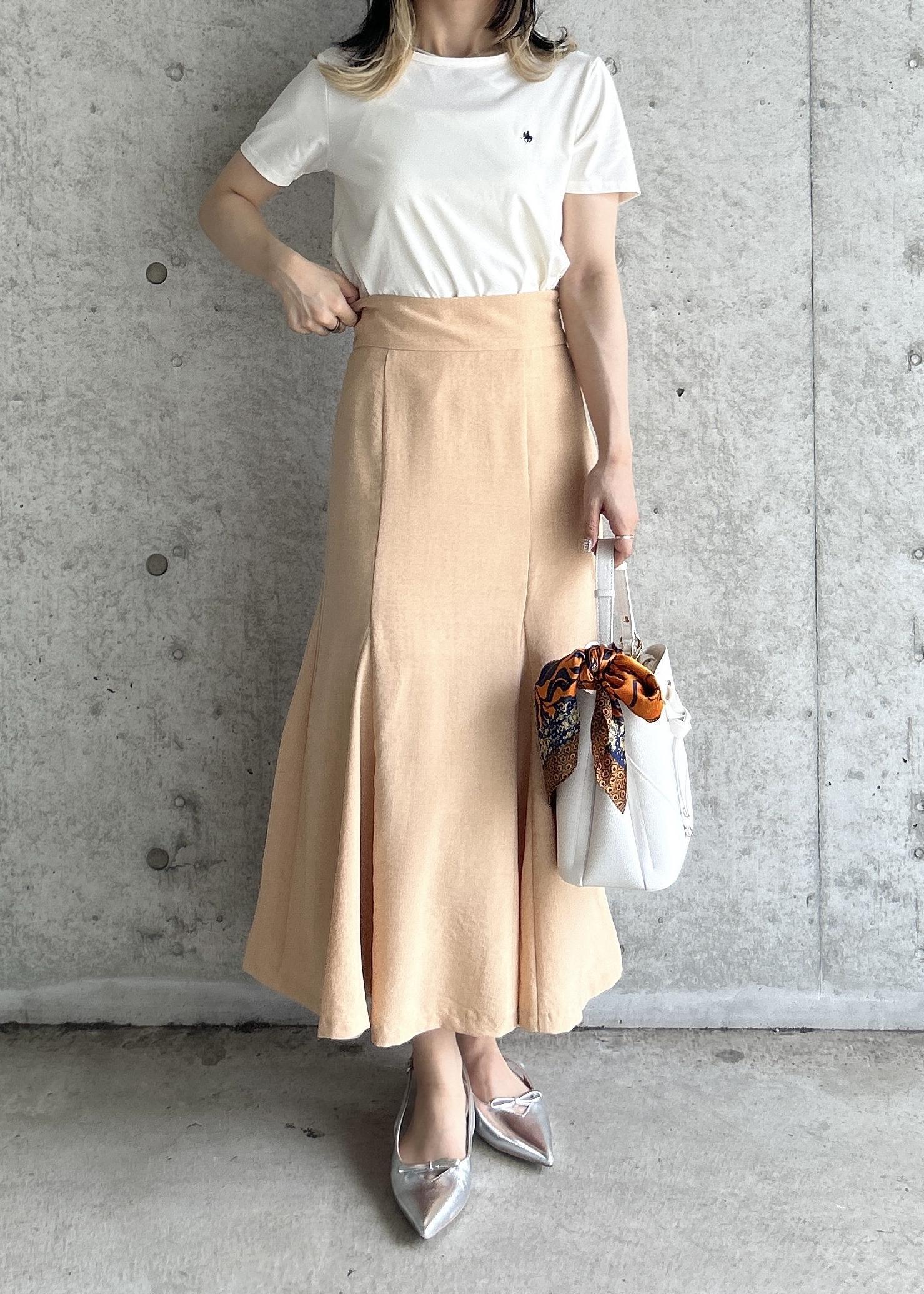 骨格ウェーブですが、お尻と太ももは程よいフィット感でラインを拾いすぎないので挑戦しやすいマーメイドスカートです◎