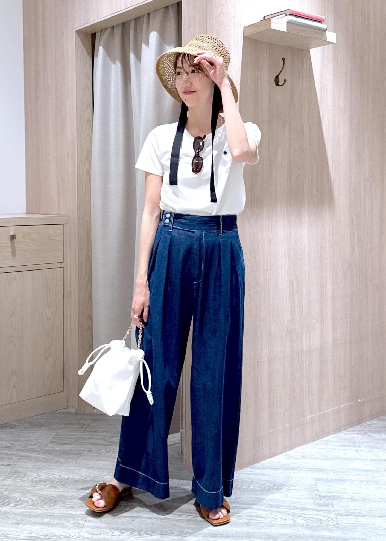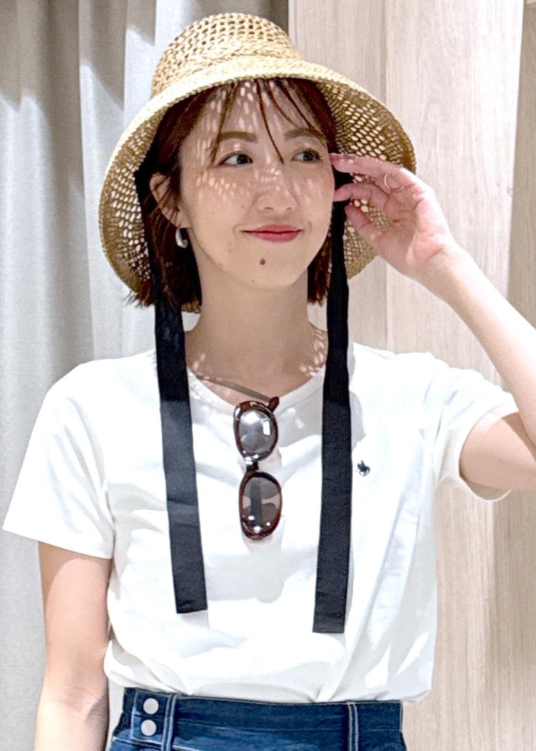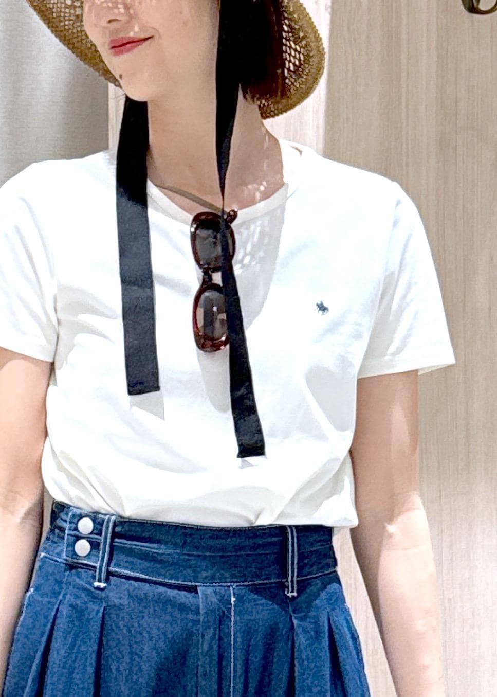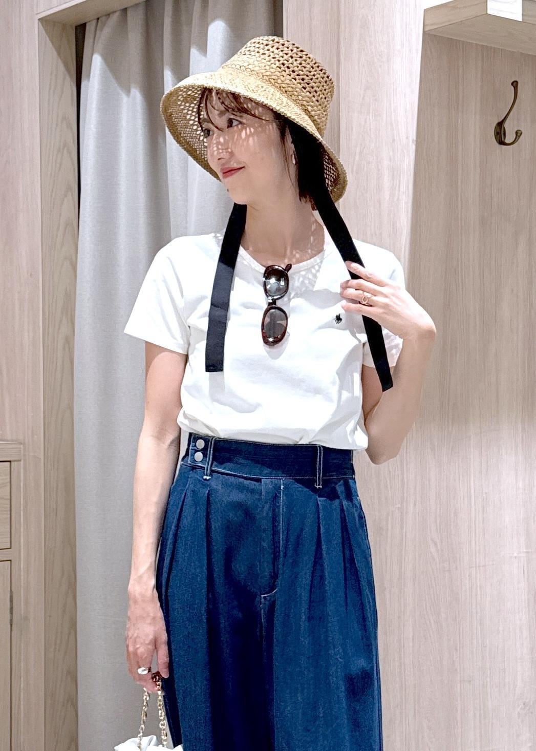 シンプルなTシャツは小物を効かせて夏のリゾートスタイルにコーディネートしました♪