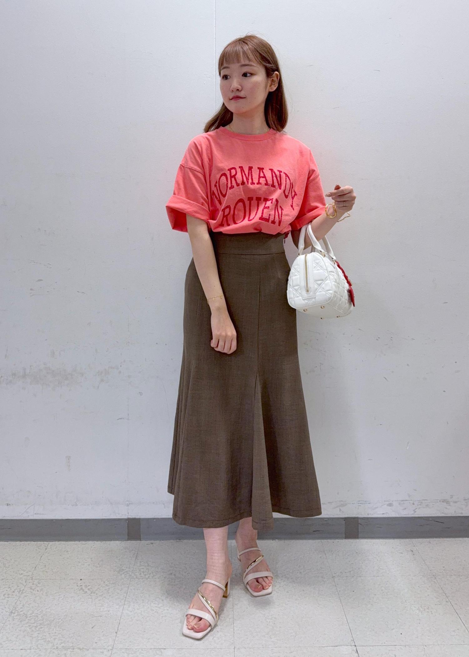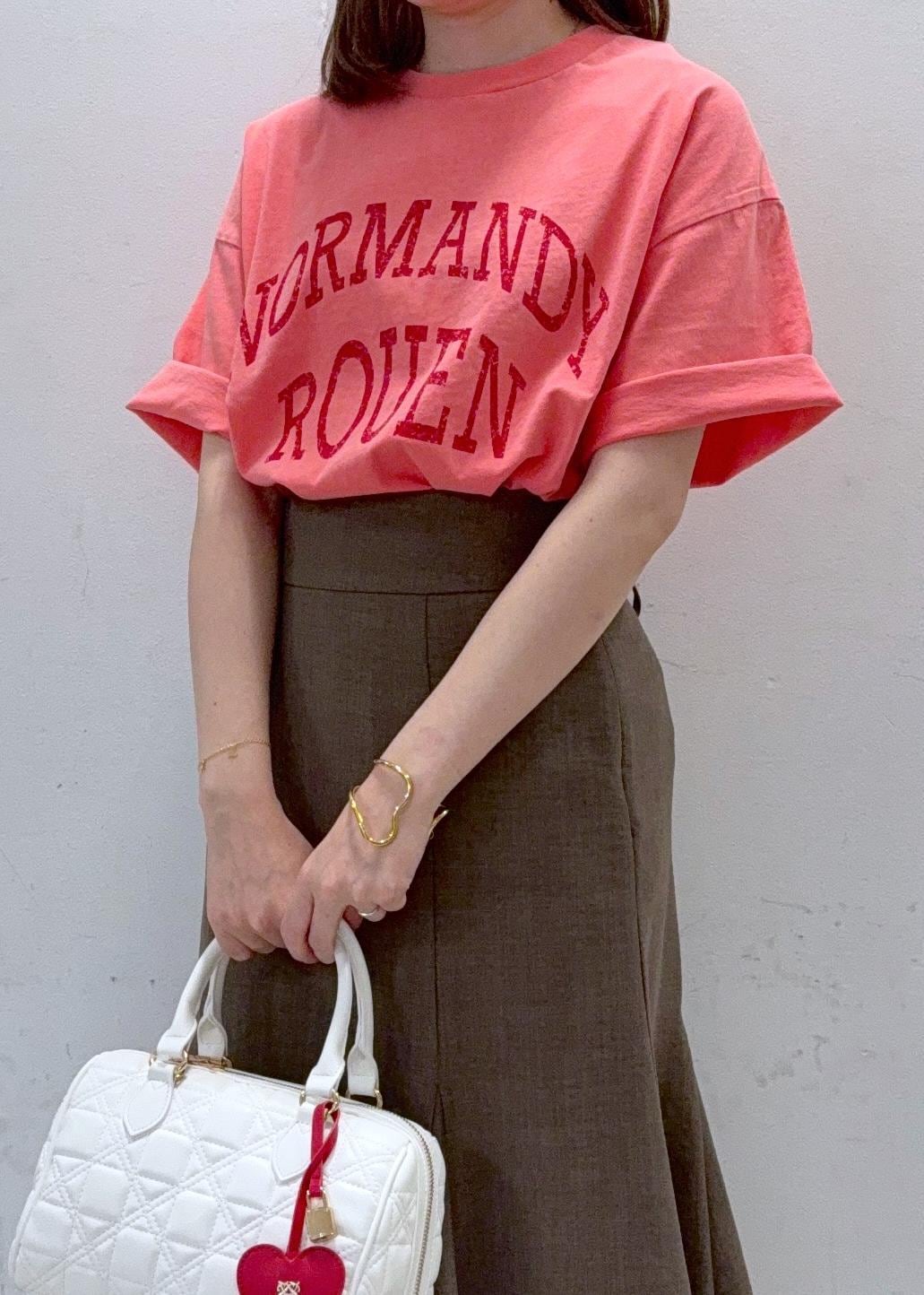 アウトレットVISピグメント加工プリントビッグTシャツオレンジ系 / F¥1,756レビュー袖丈が長めのため、折り曲げて着用してみました!