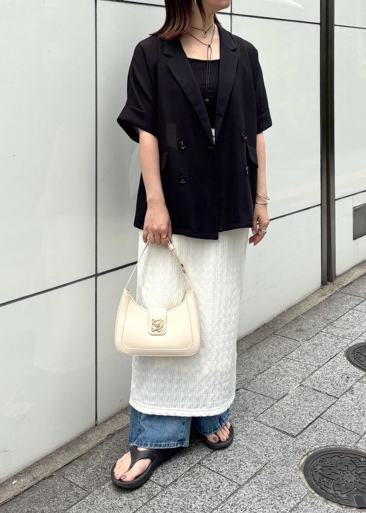 ほどよいフィット感がありながら、シルエットは拾い過ぎないためどんなトップスとも相性◎