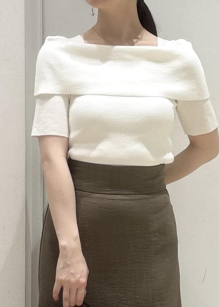 【アンチピリング/UVケア/洗える】オフショルハーフスリーブニット