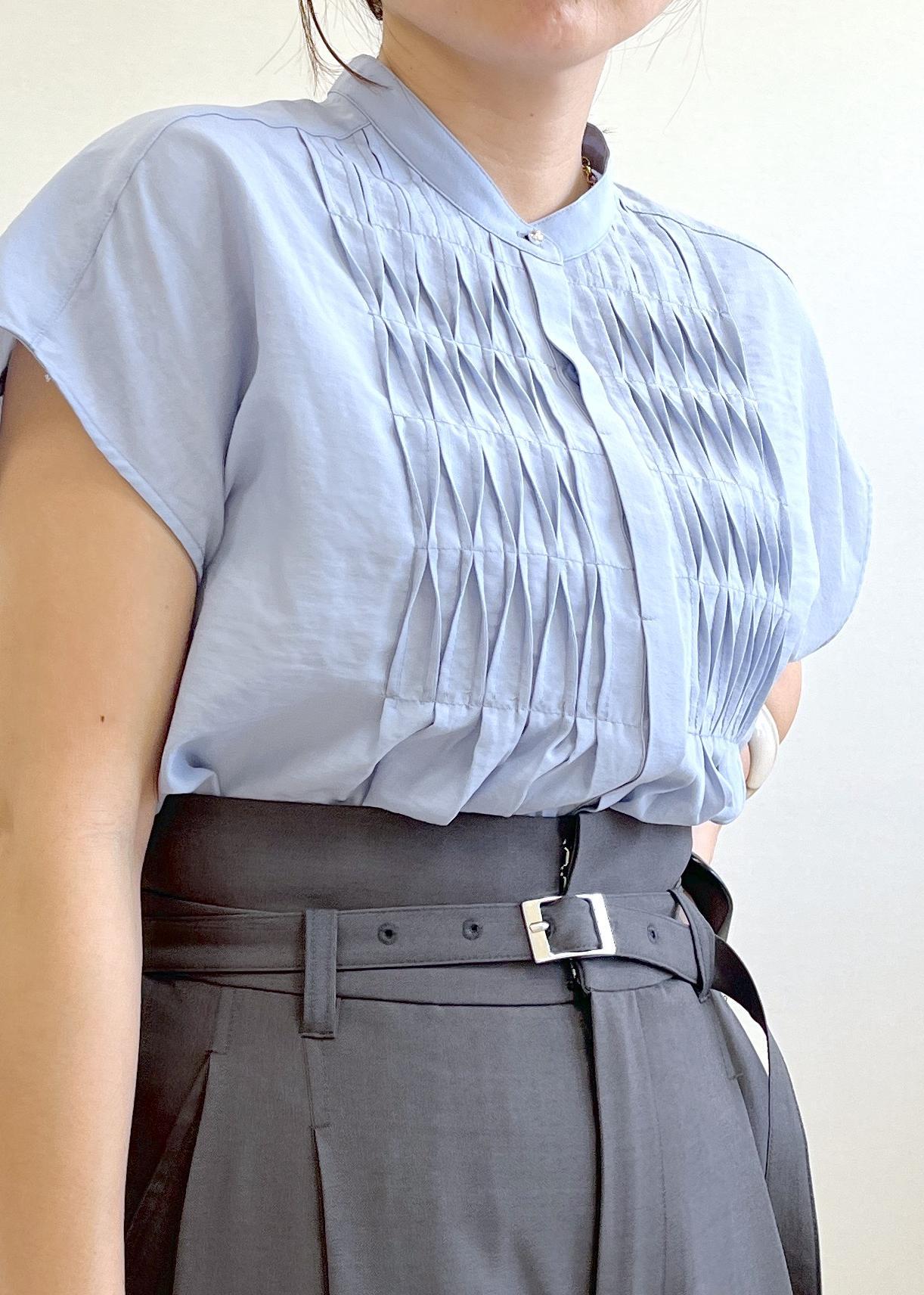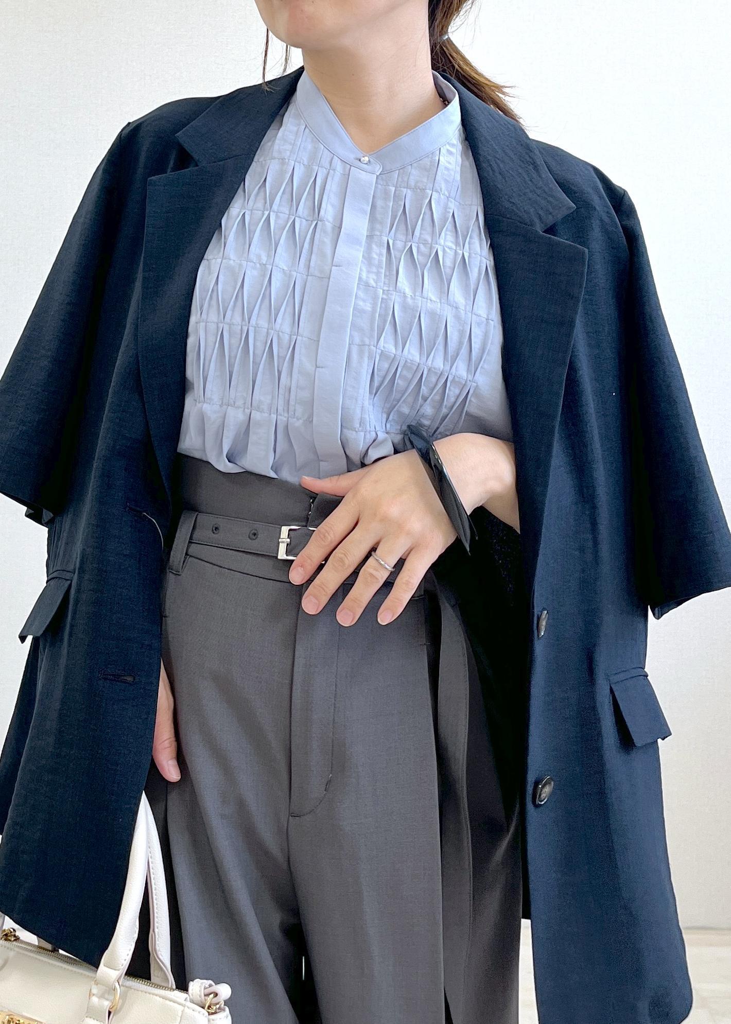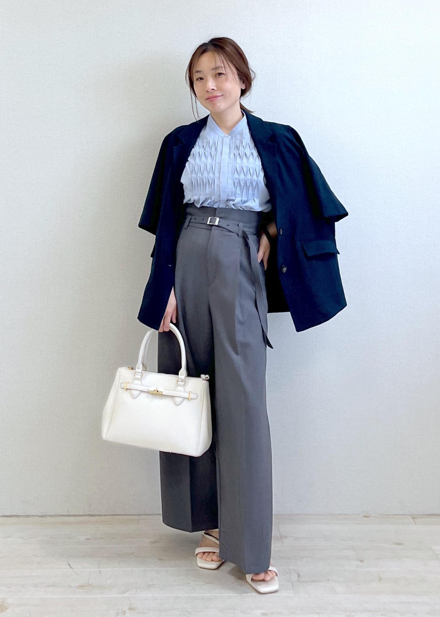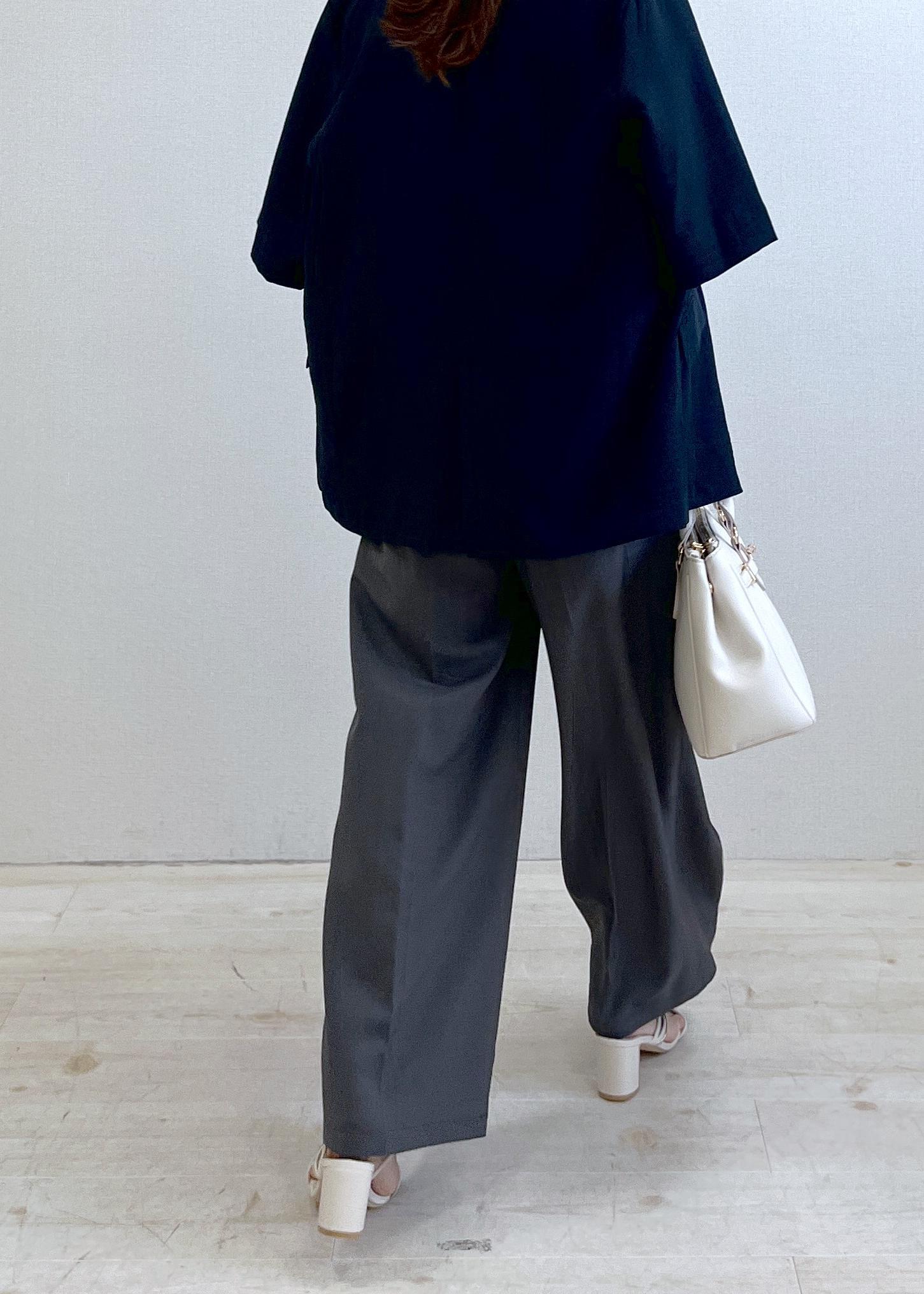 接触冷感の美脚パンツ×ブラウスでサラッと夏まで快適コーデ