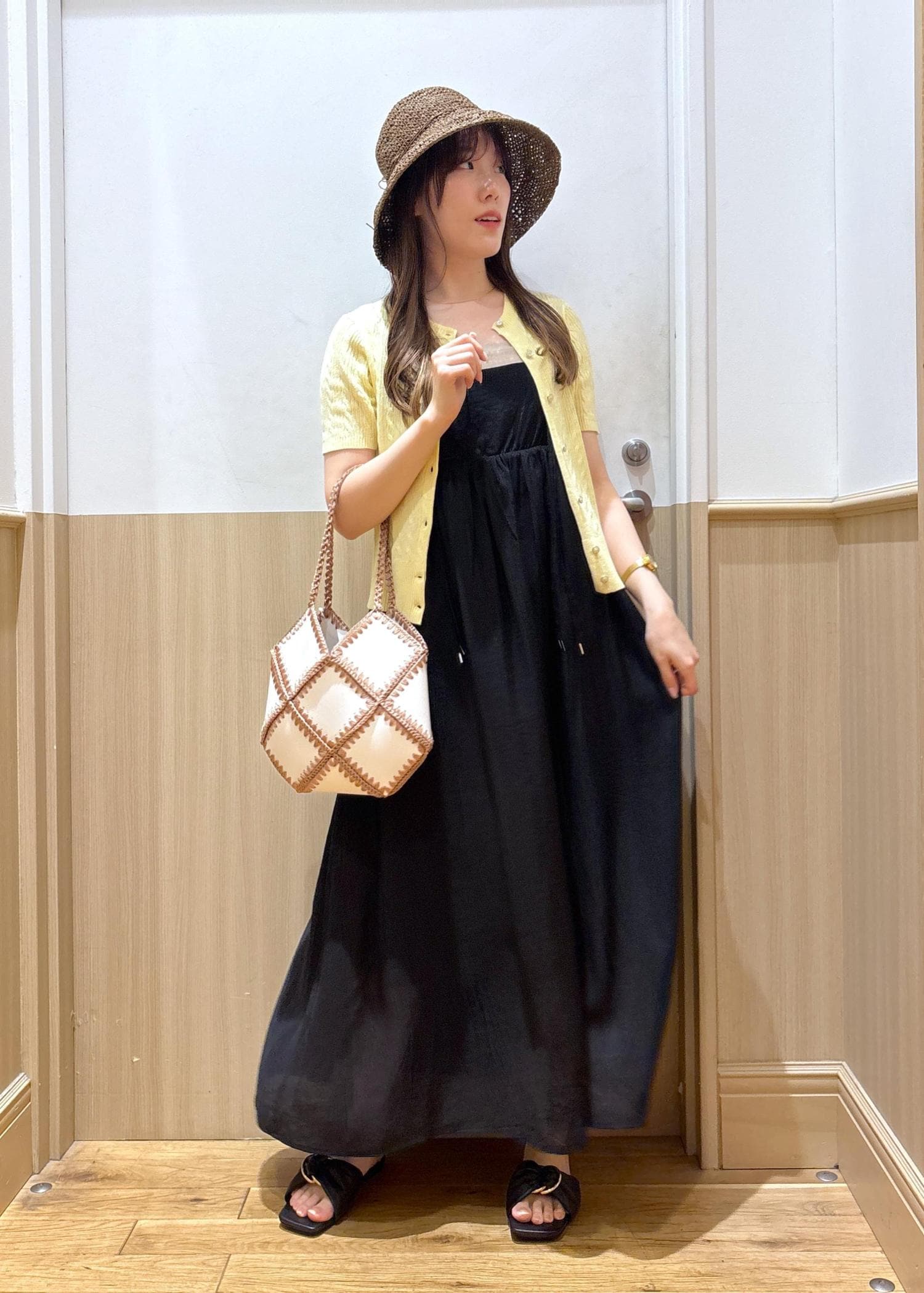 アウトレットVISAラインキャミワンピースブラック / F¥3,955レビュー絞って調節するタイプなので、着ながらでも調節できますし、落ちてくる心配もないです!