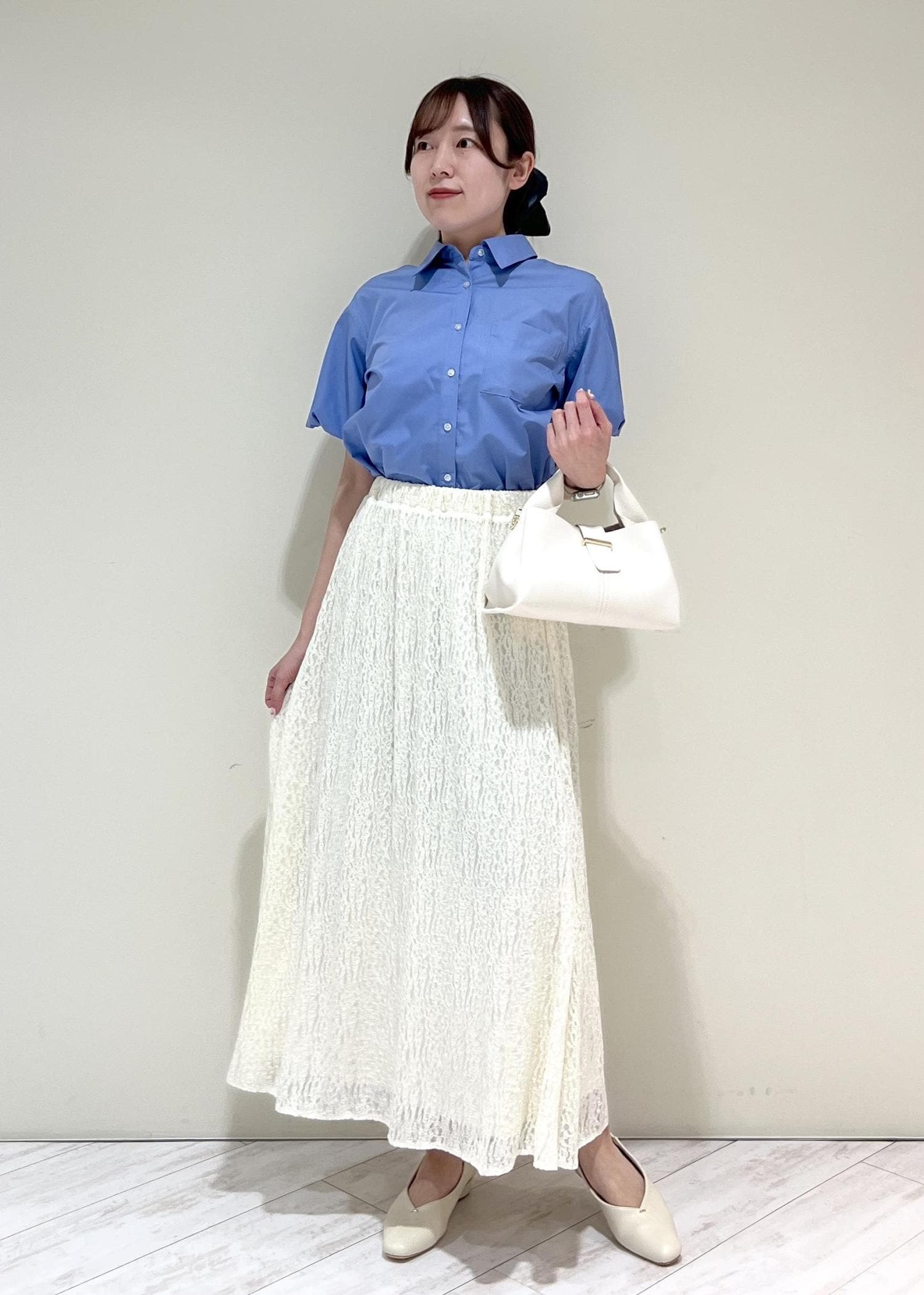 かっこいい印象になりがちのネイビーのTシャツをピンクのシャツと白のスカートで合わせることで甘さと華やかさをだしました!