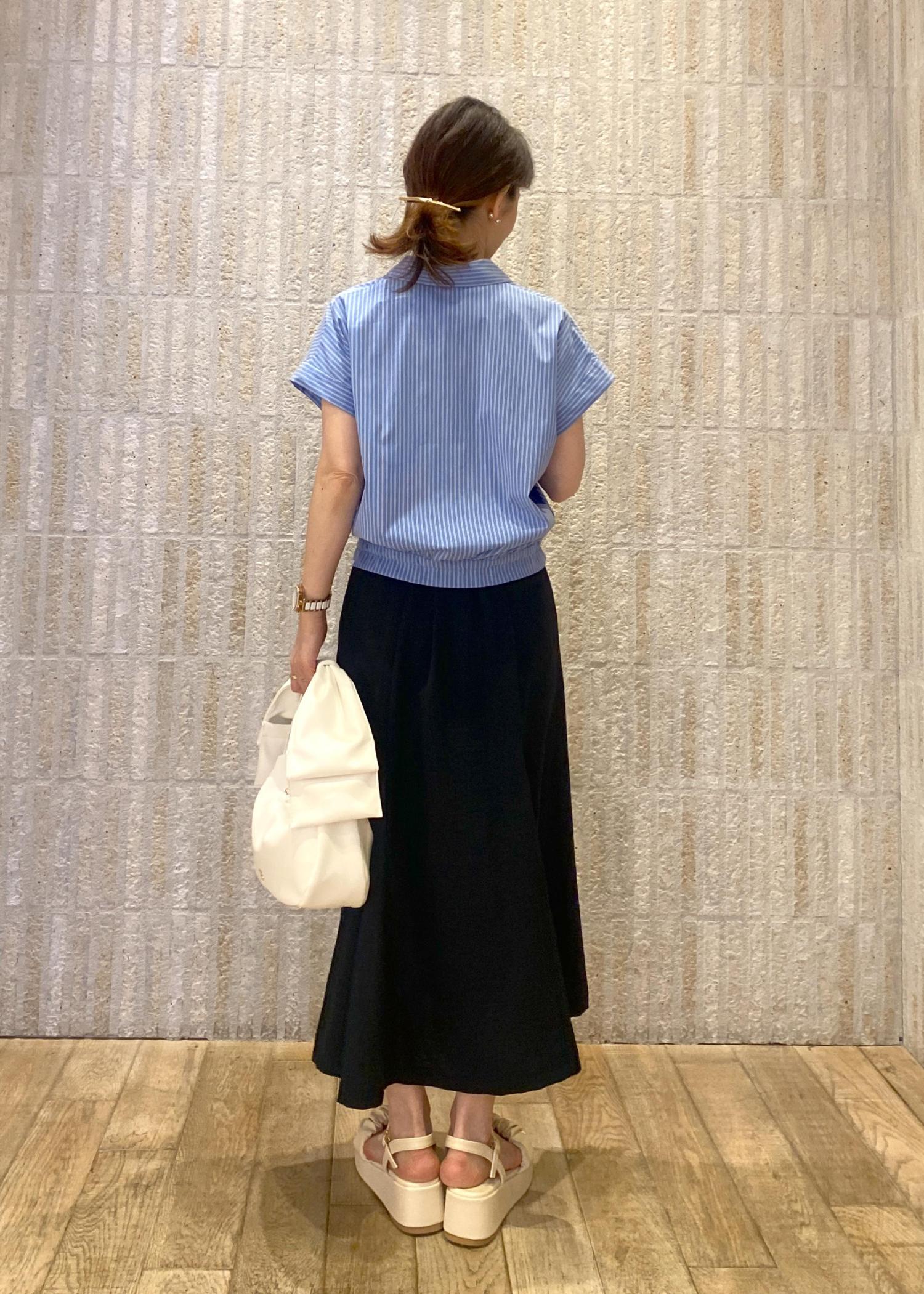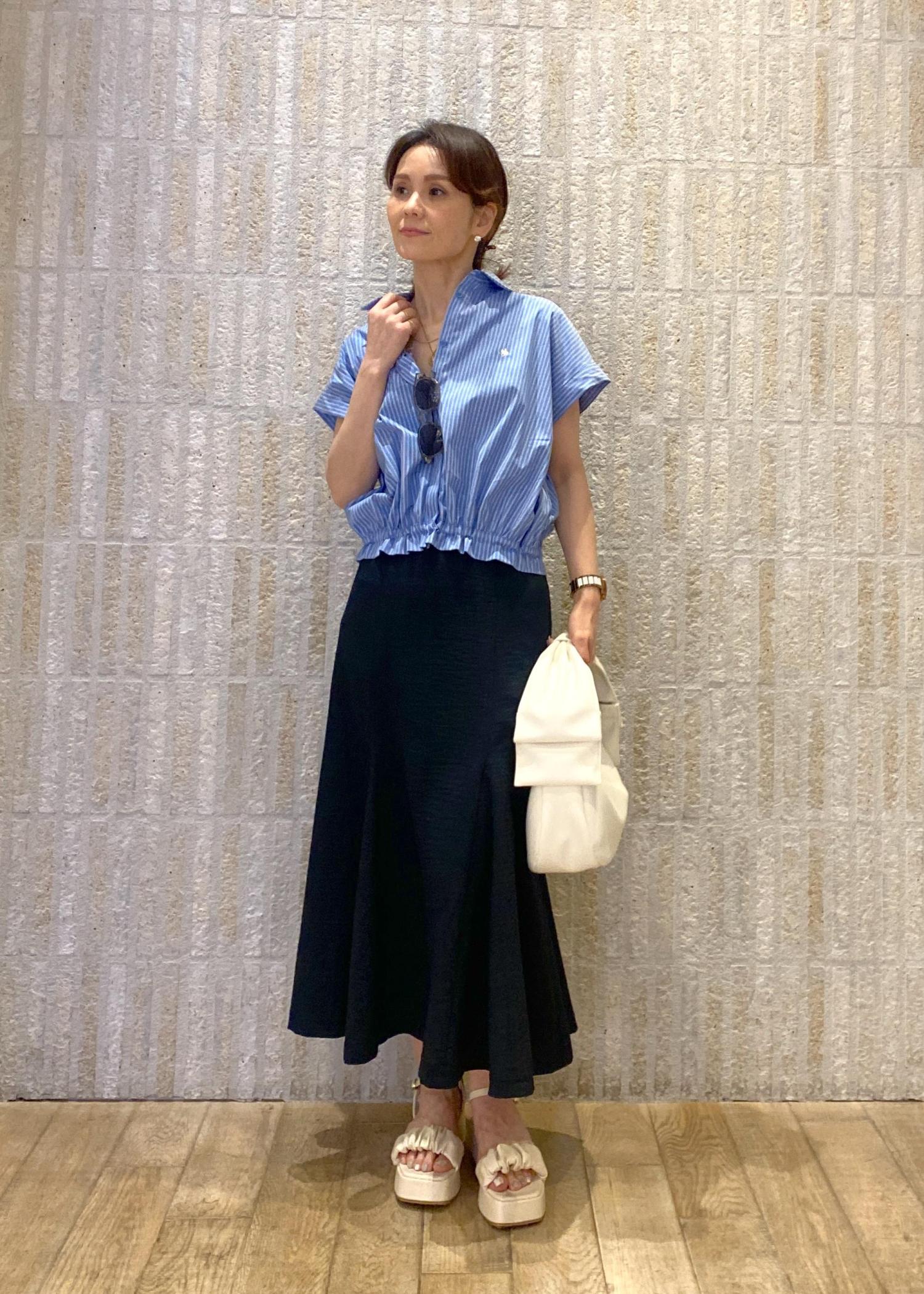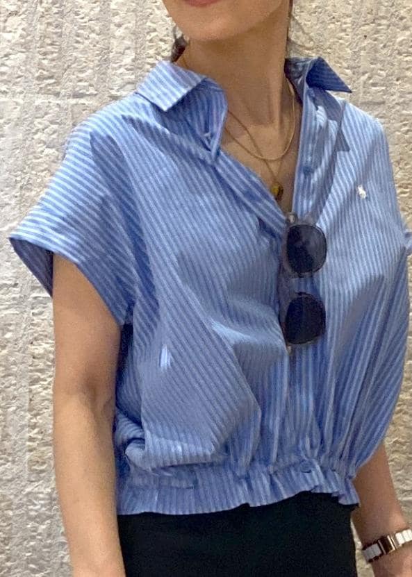 VIS【POLO BCS】VIS別注フレンチスリーブドローストリングシャツブルー / F¥6,050レビュー張り感のあるフレンチスリーブのシャツで体のラインを拾わないので、着痩せ効果大!
