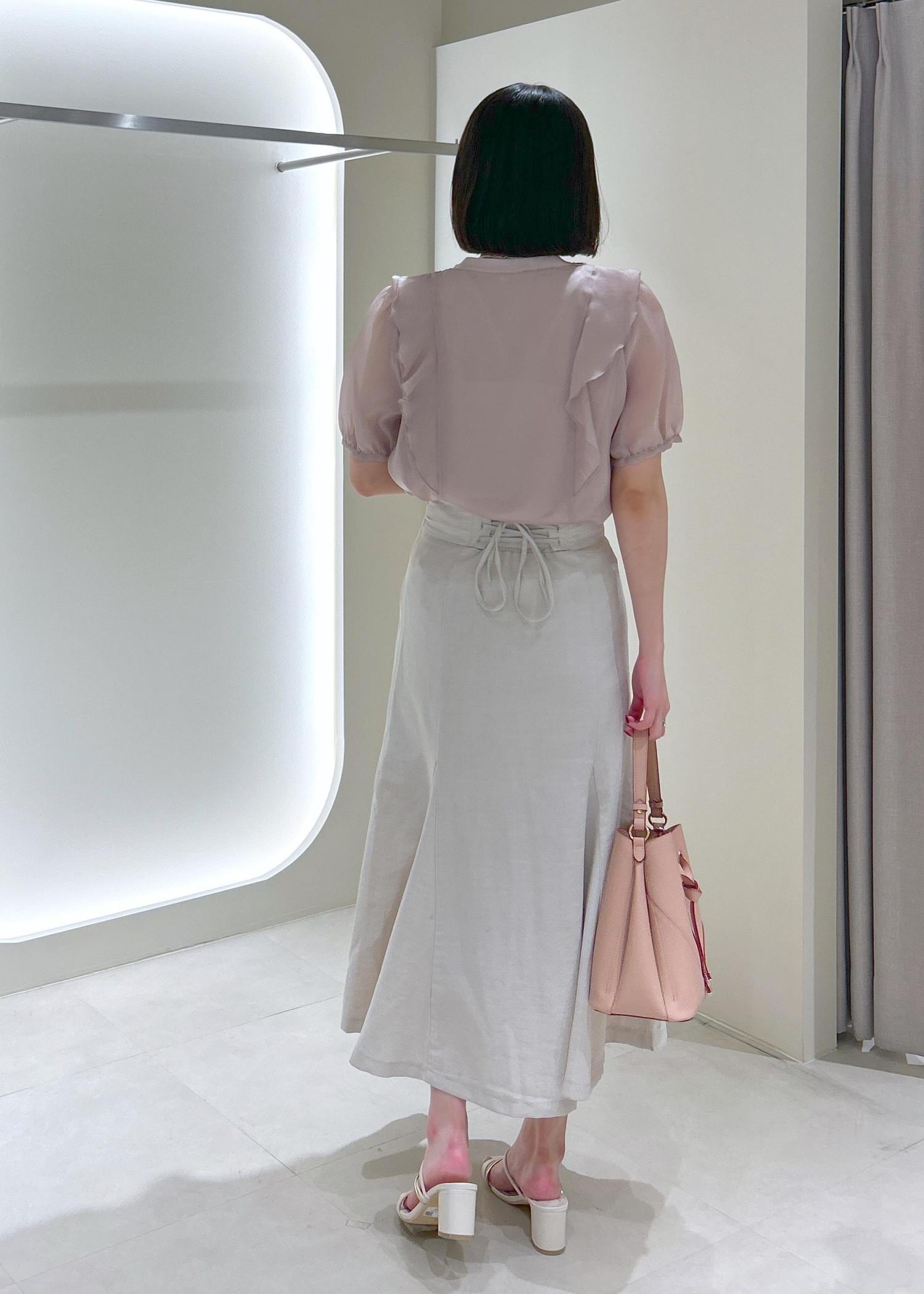 裾はインでもアウトでも使いやすい丈感で、たっぷりのフリルで一枚で着映えしてくれます。 -