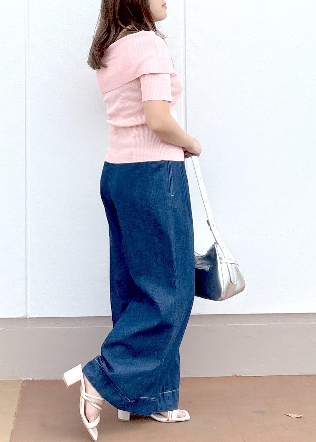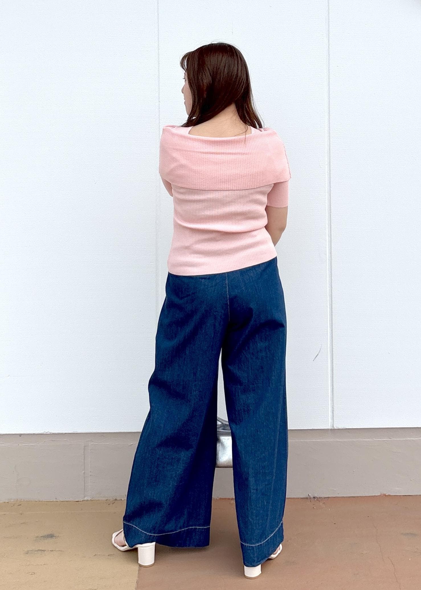 VIS【アンチピリング/UVケア/洗える】オフショルハーフスリーブニットピンク / F¥4,939レビュー大人気のトップスの半袖バージョン!