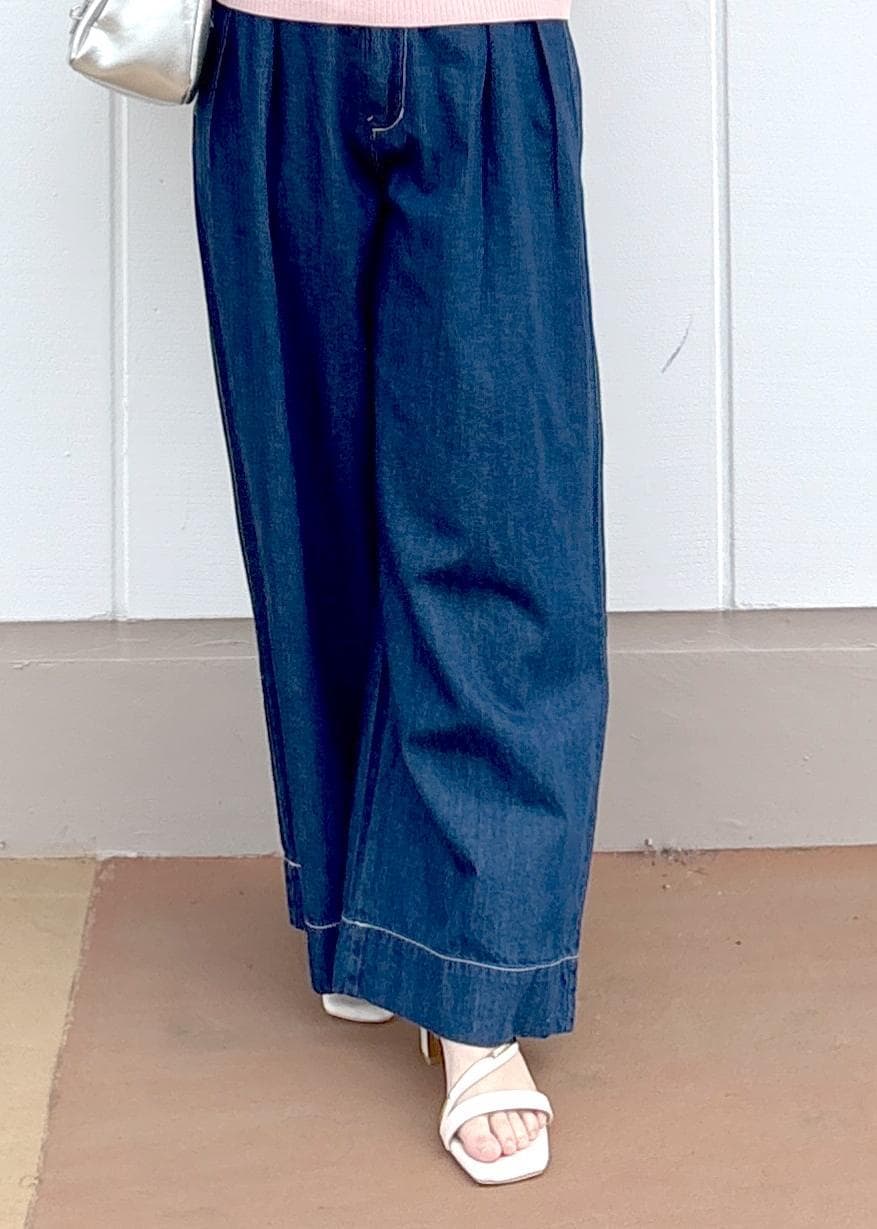 アウトレットVISタックデザインリラックスデニムパンツブルー / M¥3,460レビュー153cm、Mサイズ着用でヒールを履いて地面につかないぐらいの丈感です!