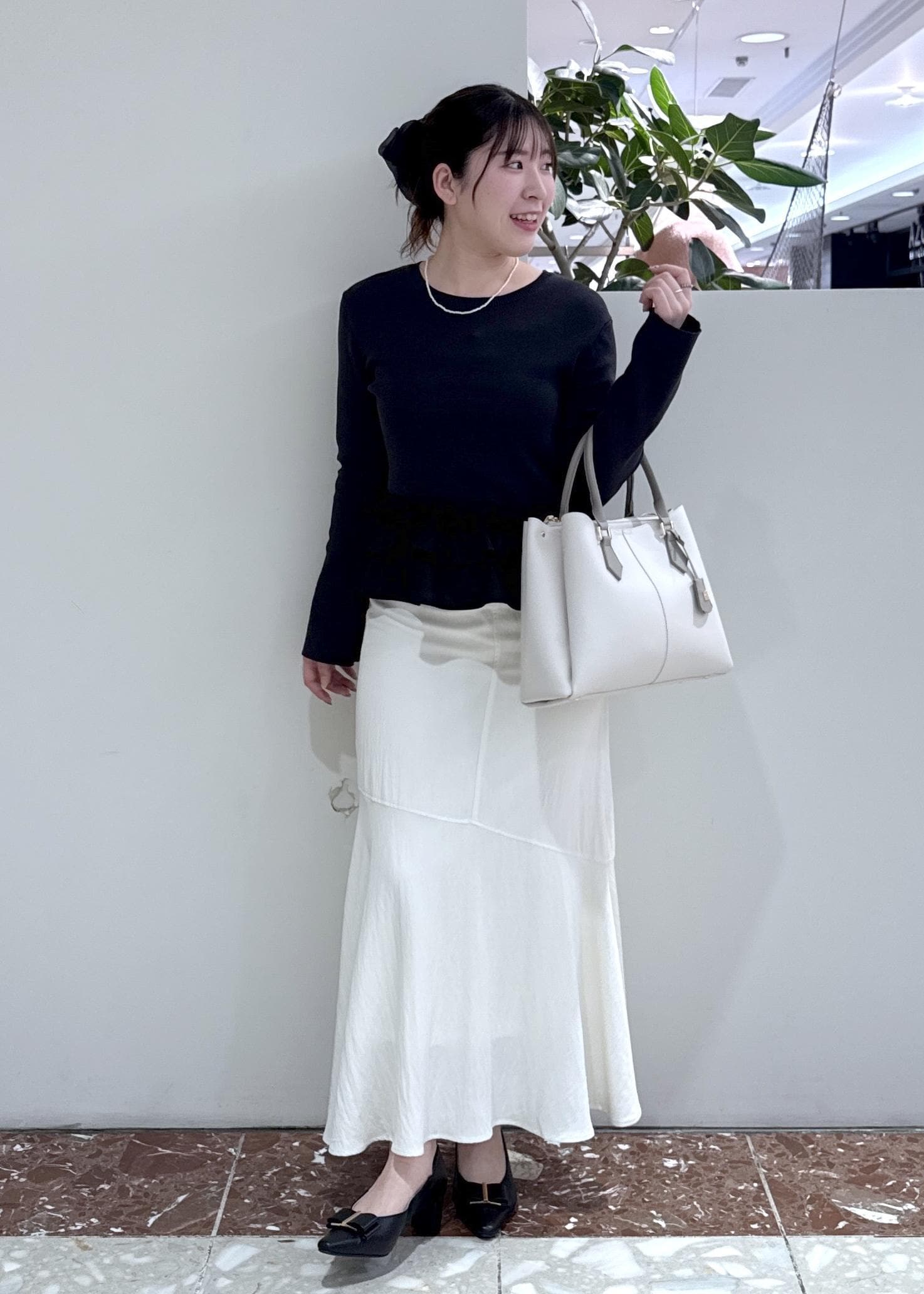 締め付けがない生地でややウエストはゆるっとしているので、Sサイズや細めの方は上からベルトアレンジなどもオススメです。 -