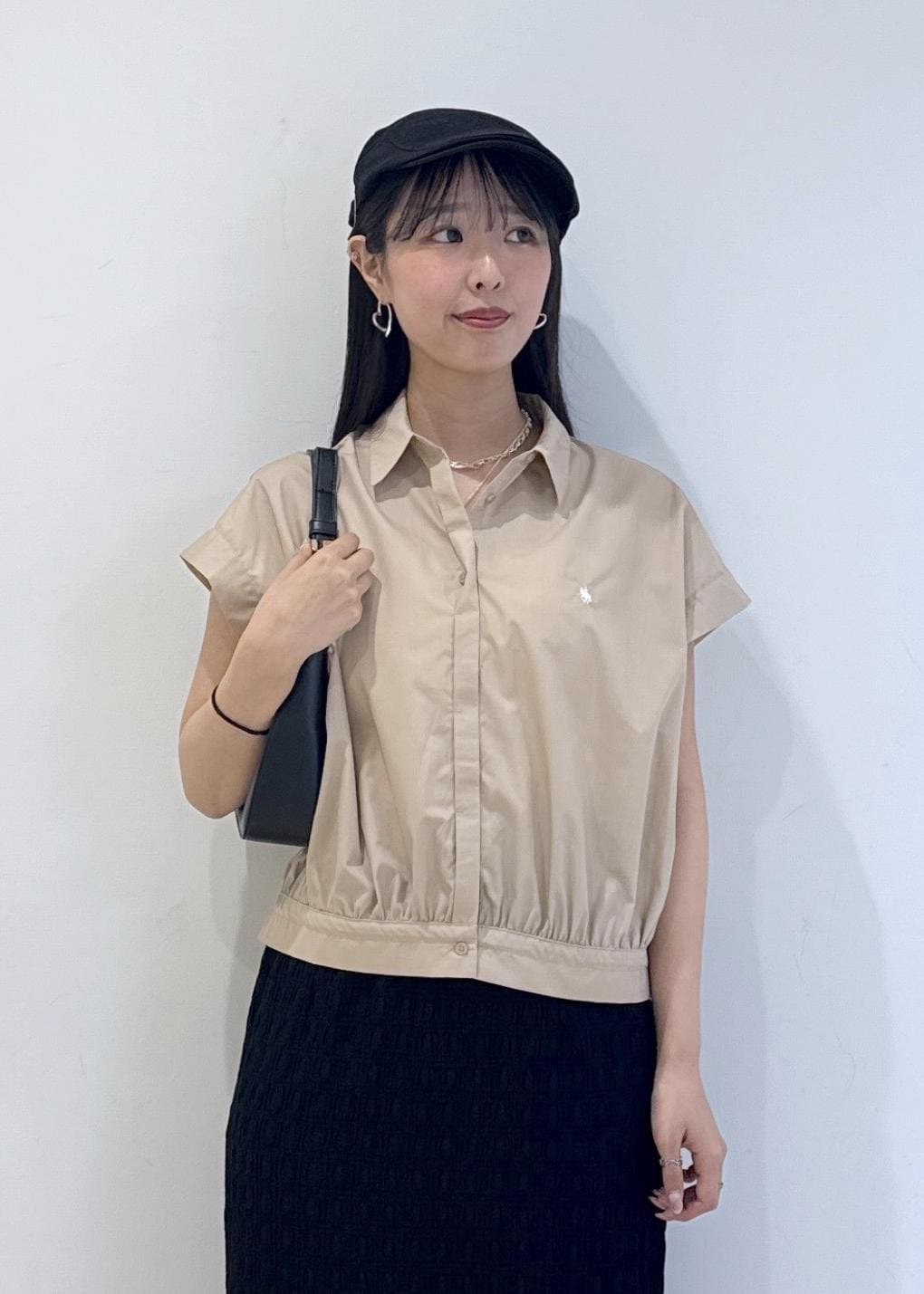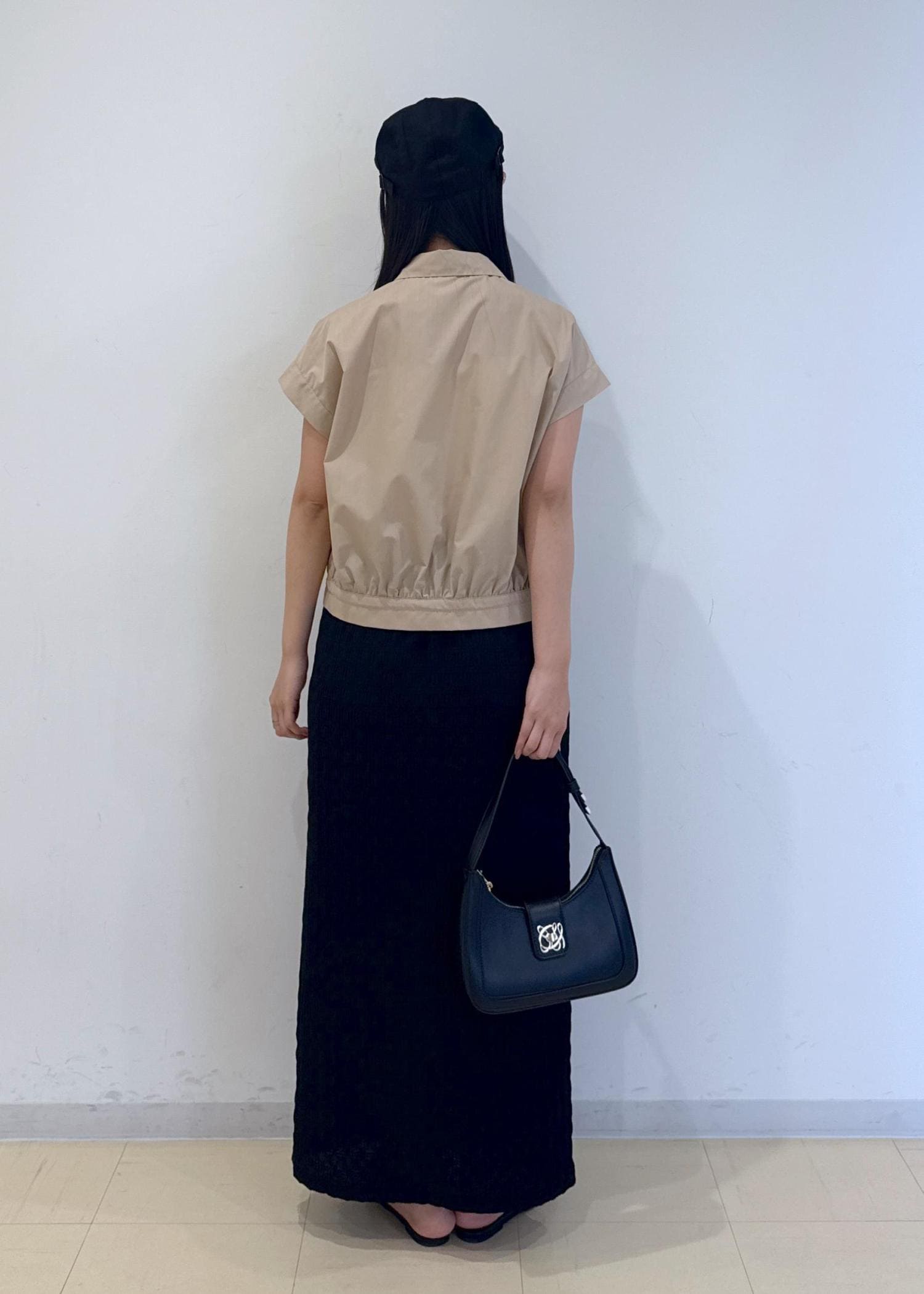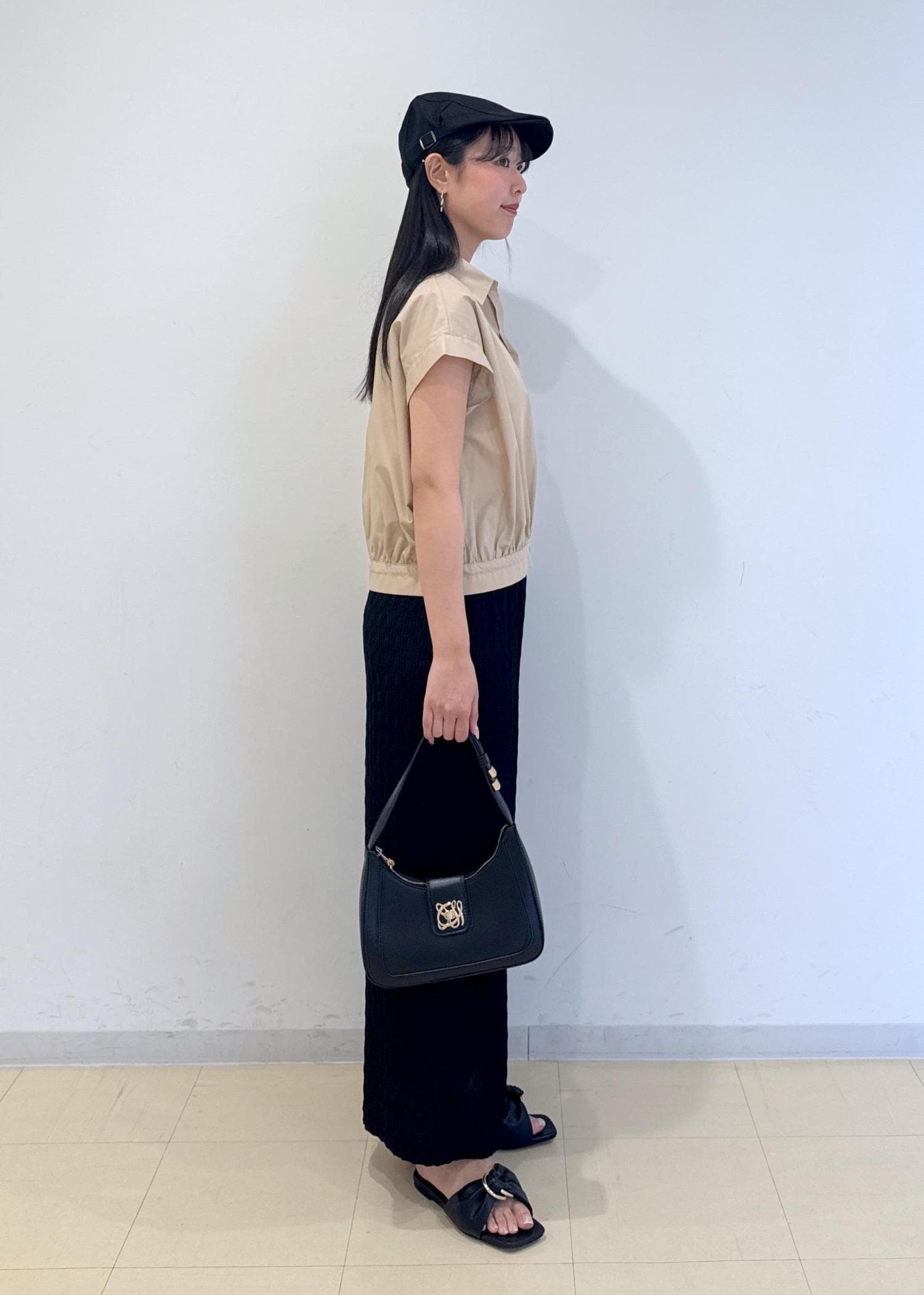 ブラック×ブラウンの、落ち着きすぎないシックな大人淡色コーデです
