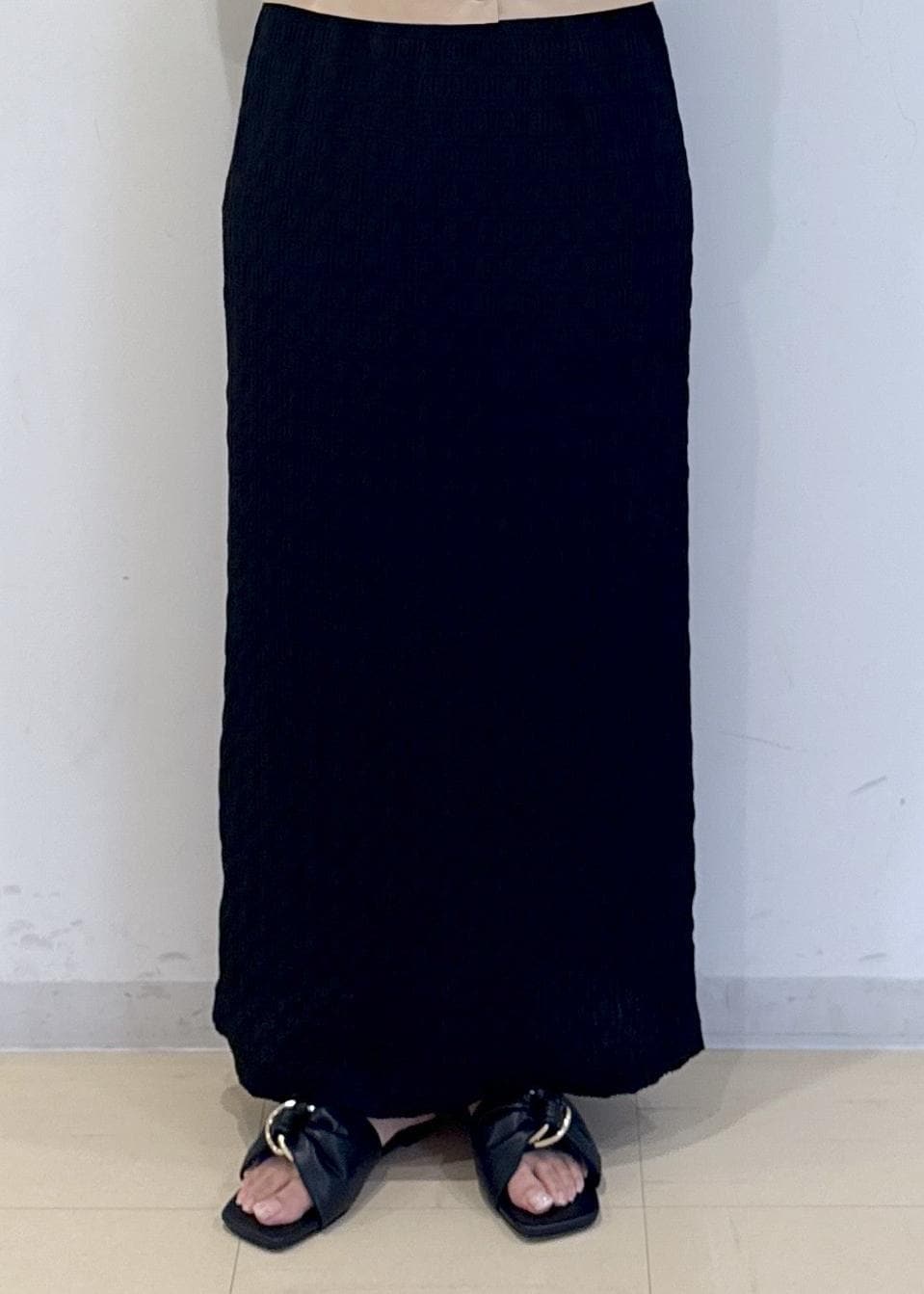 アウトレットVIS【新色追加】【接触冷感】膨れジャガードナロースカートブラック / F¥3,293レビューシルエットが綺麗で、骨格ウェーブ骨盤が気になる体型でも、真っ直ぐで安心◎