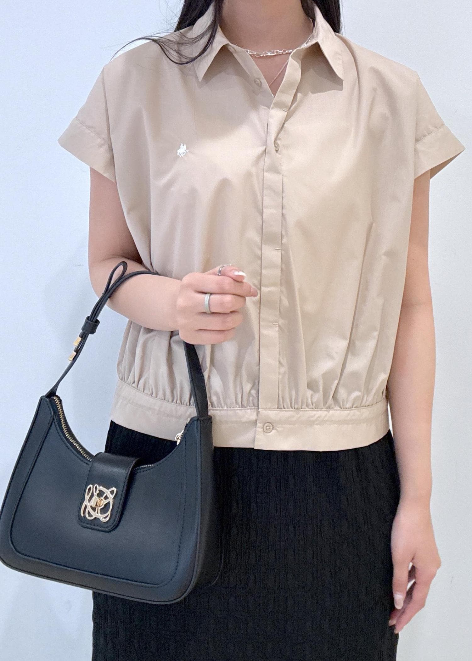 VIS【POLO BCS】VIS別注フレンチスリーブドローストリングシャツベージュ系 / F¥6,050レビューフレンチスリーブなので、二の腕が全然きにならない!シャカシャカとした生地なので、雨の日でも安心して着用できます◎