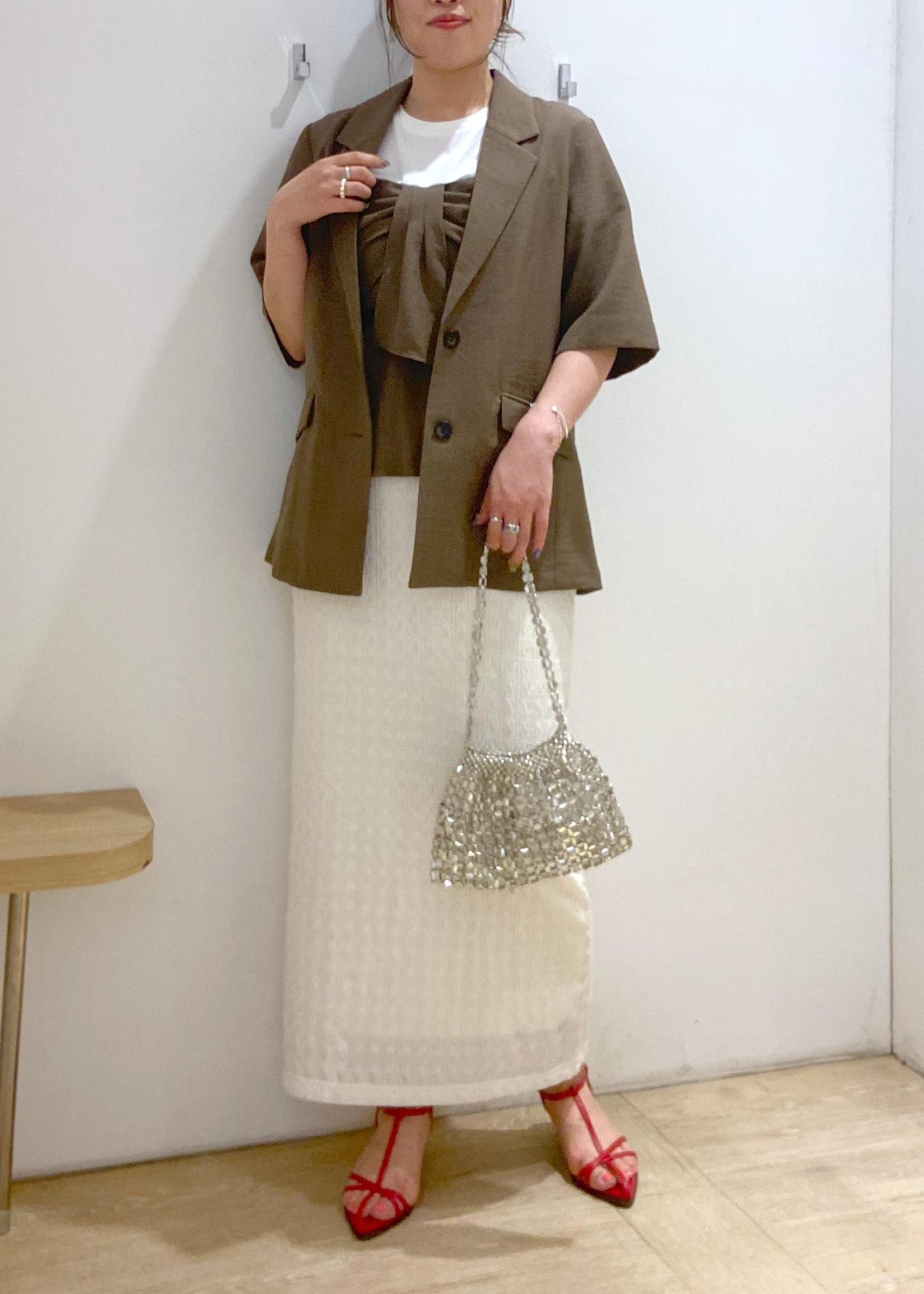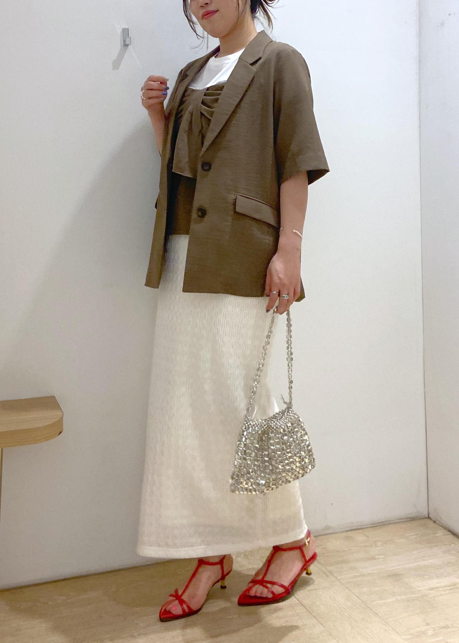 ジャケット×タイトスカートで大人なコーディネートにまとめました。