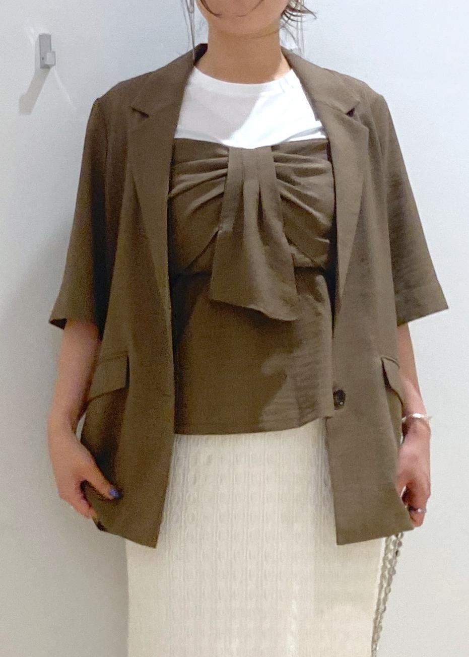 ややペプラムのようなシルエットなので、女性らしいくびれのラインを見せやすいです。 -