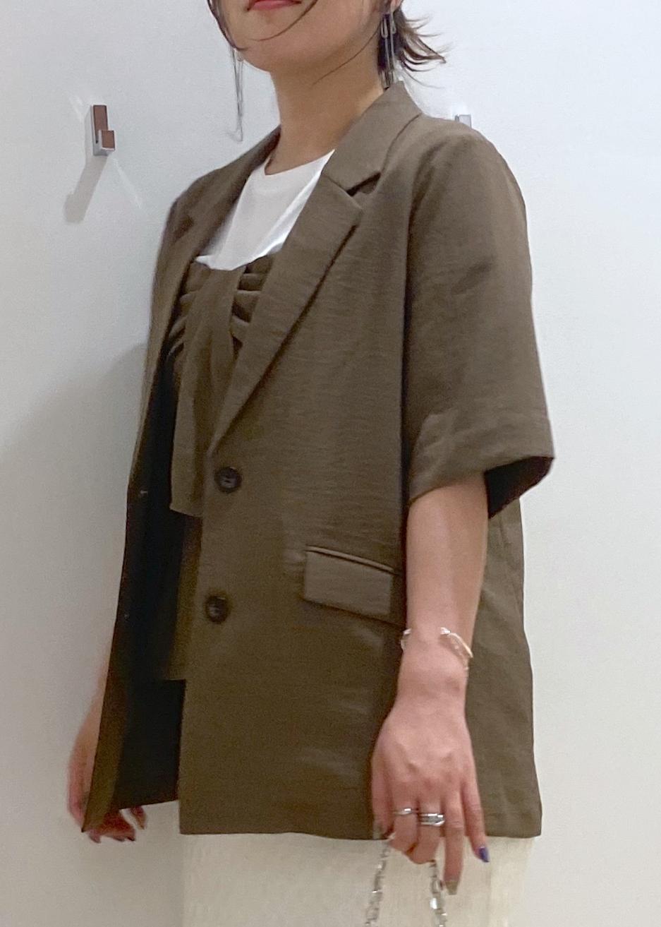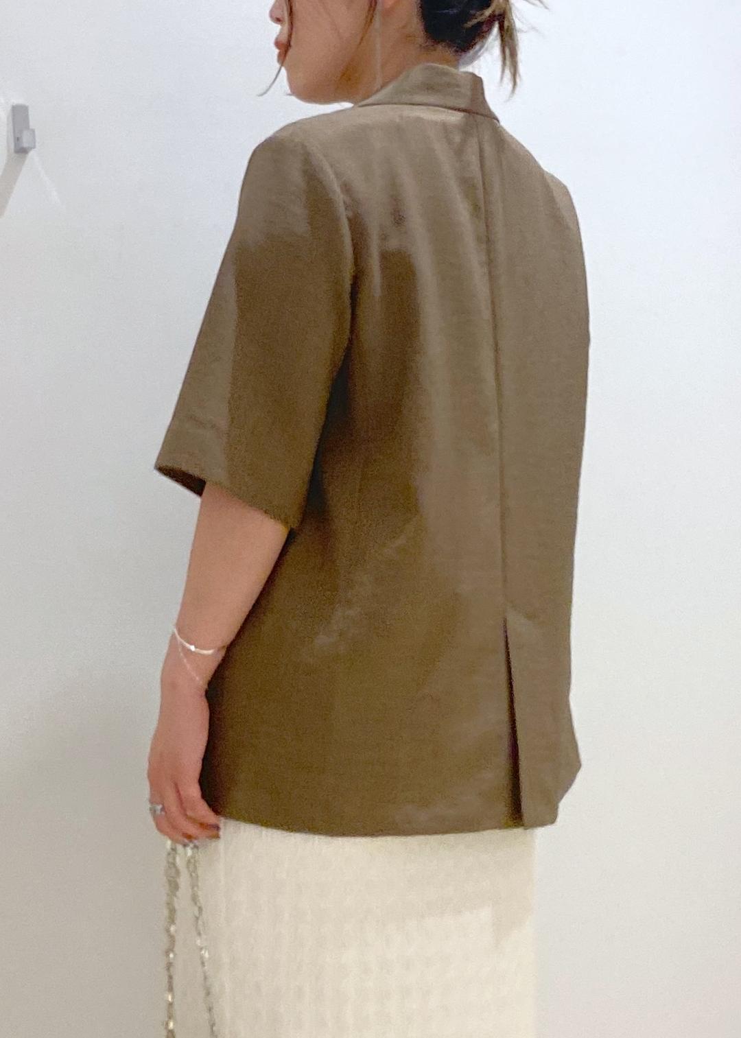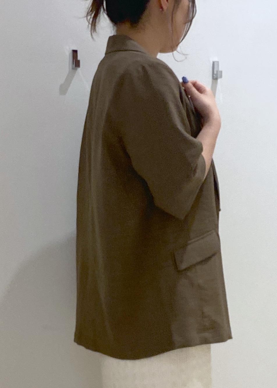 VIS【美easy】ハーフスリーブジャケット/セットアップ対応・洗えるカーキ系 / M¥7,909レビューMサイズだと少し肩が余るくらいですが、オーバサイズ過ぎないシルエットです。