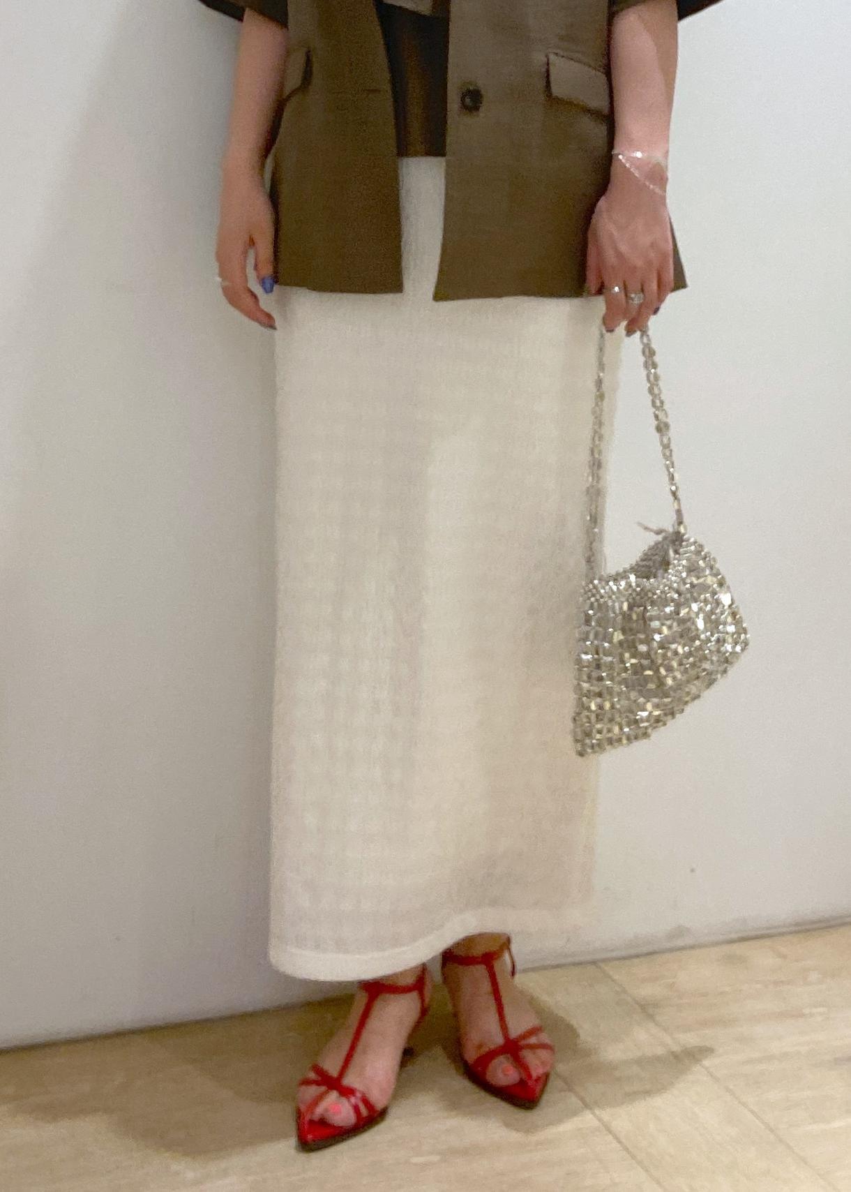 アウトレットVIS【新色追加】【接触冷感】膨れジャガードナロースカートオフホワイト / F¥3,293レビュースリットが入っていないので、スラリと縦長効果が出やすいスカートです。