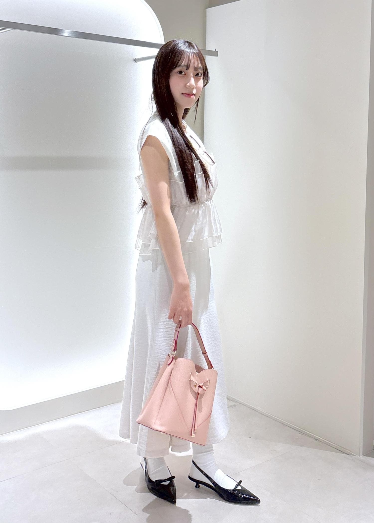 ハートのバックを合わせることでお仕事コーデだけでなくお出かけコーデとしても着ることができます!