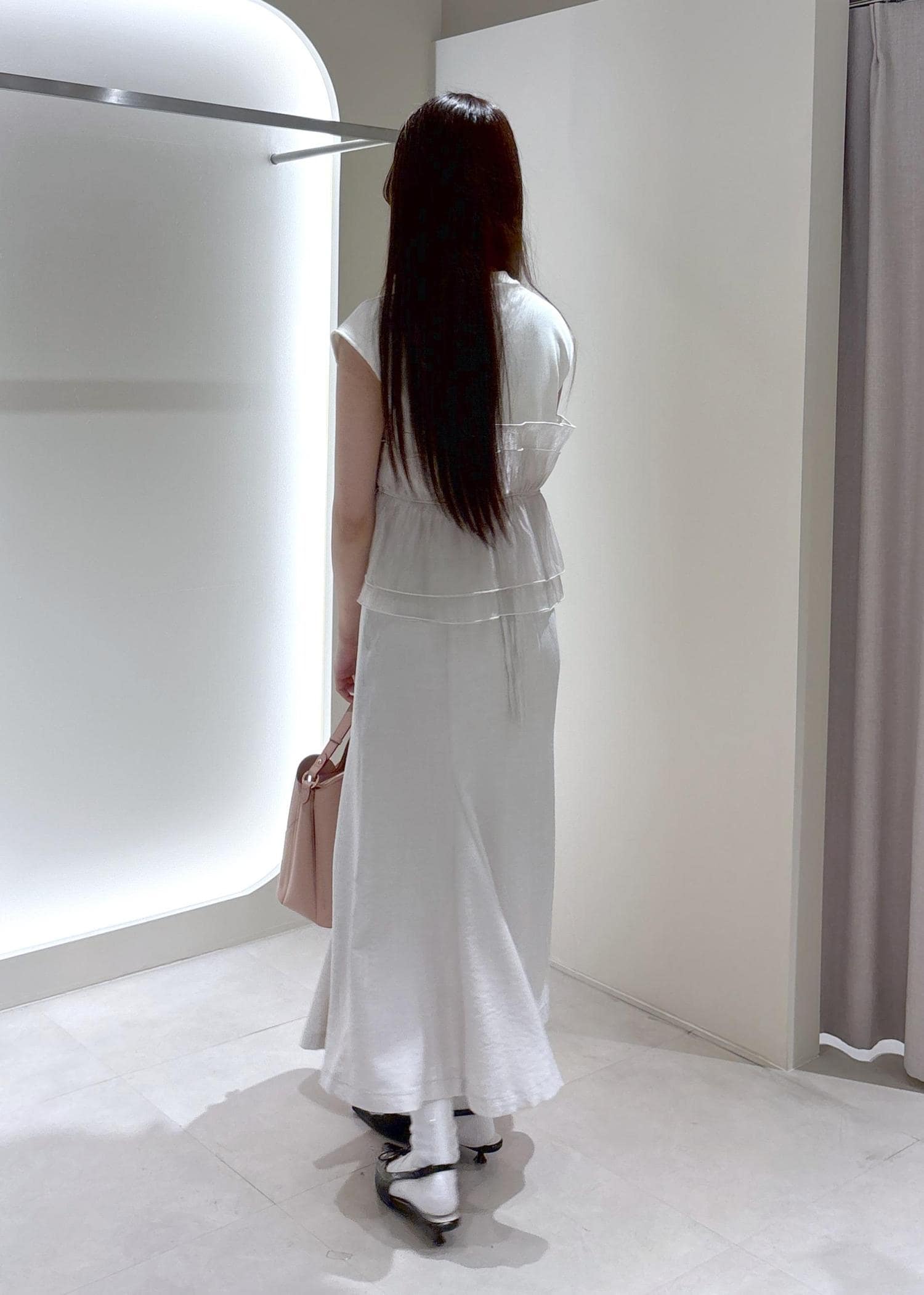 シンプルなマーメイドスカートとビスチェドッキングを合わせることでシンプルすぎず可愛いお仕事コーデになります♫
