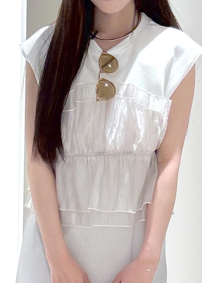 旬なレイヤードスタイルが叶う!ビスチェドッキングフレンチスリーブプルオーバー【洗える】