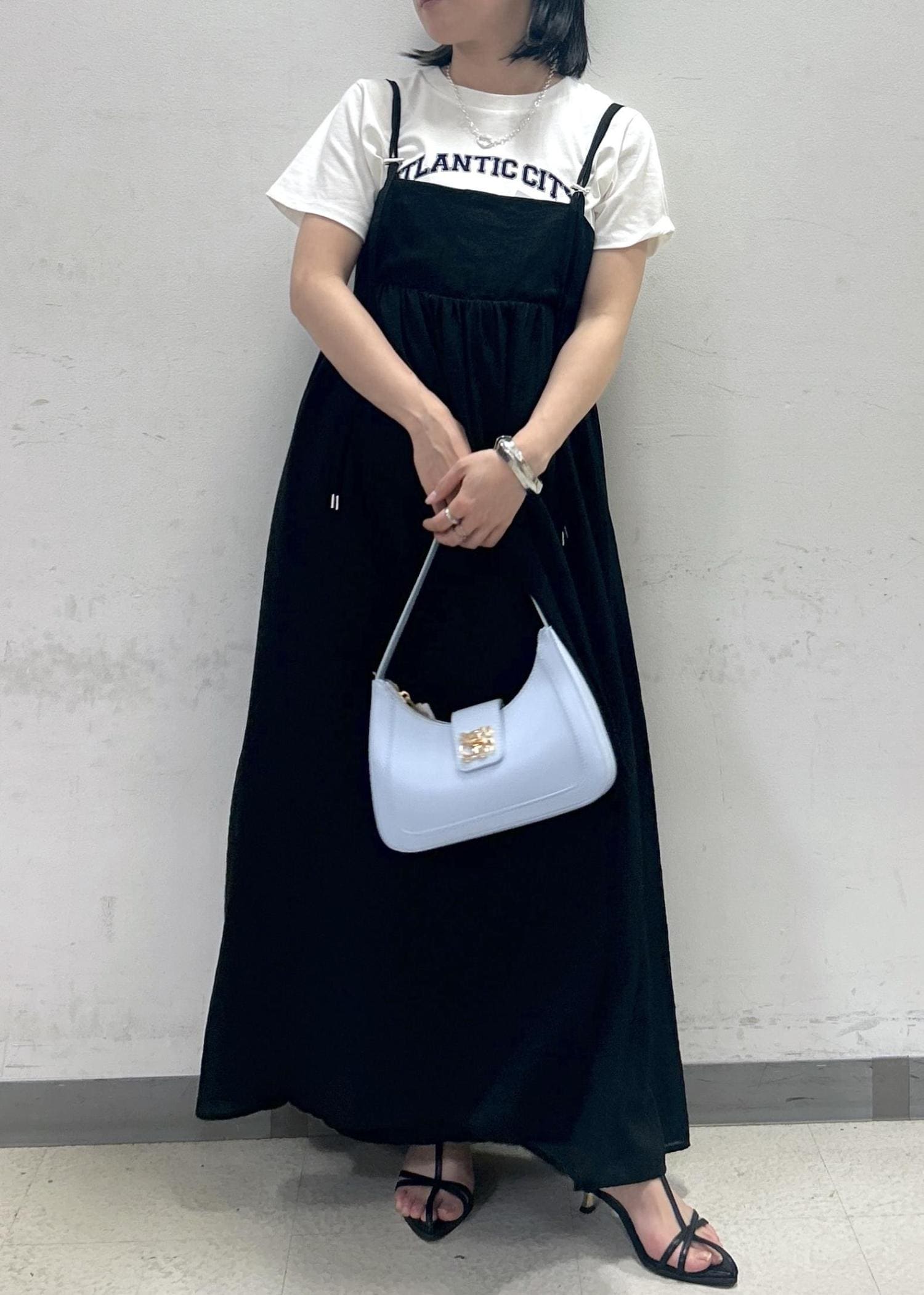 アウトレットVISAラインキャミワンピースブラック / F¥3,955レビュー肩紐で長さの調節ができるので、150㎝でも床につかない長さでした。