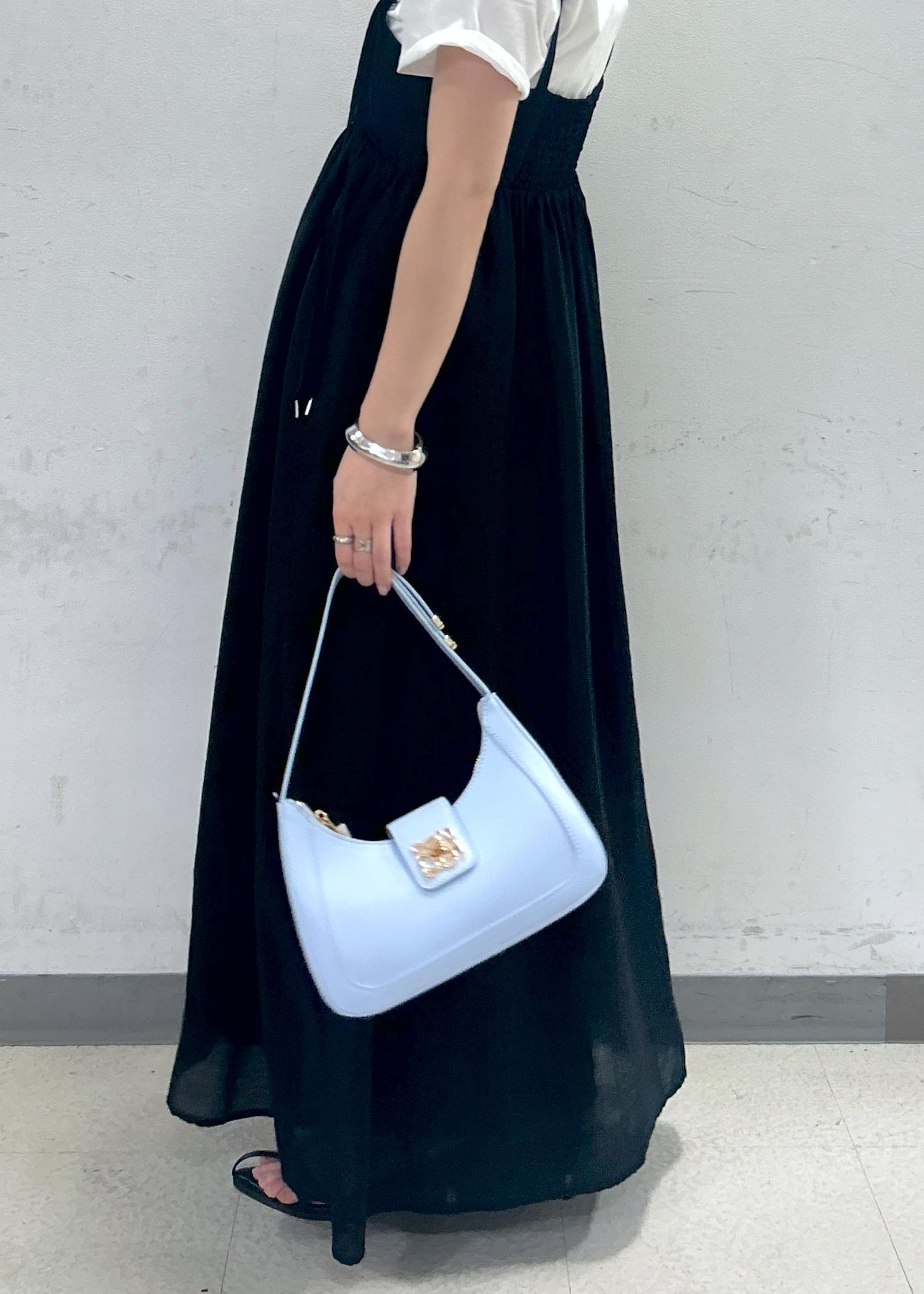 表地は透け感はありますが、裏地付きなので安心です。肩紐の長さで、着こなしの幅が広がります。 -