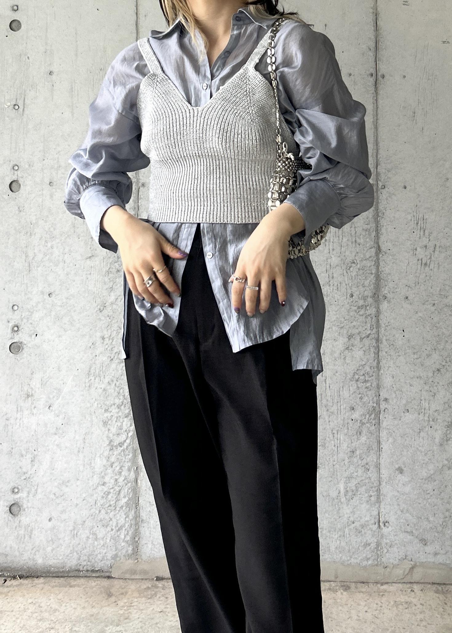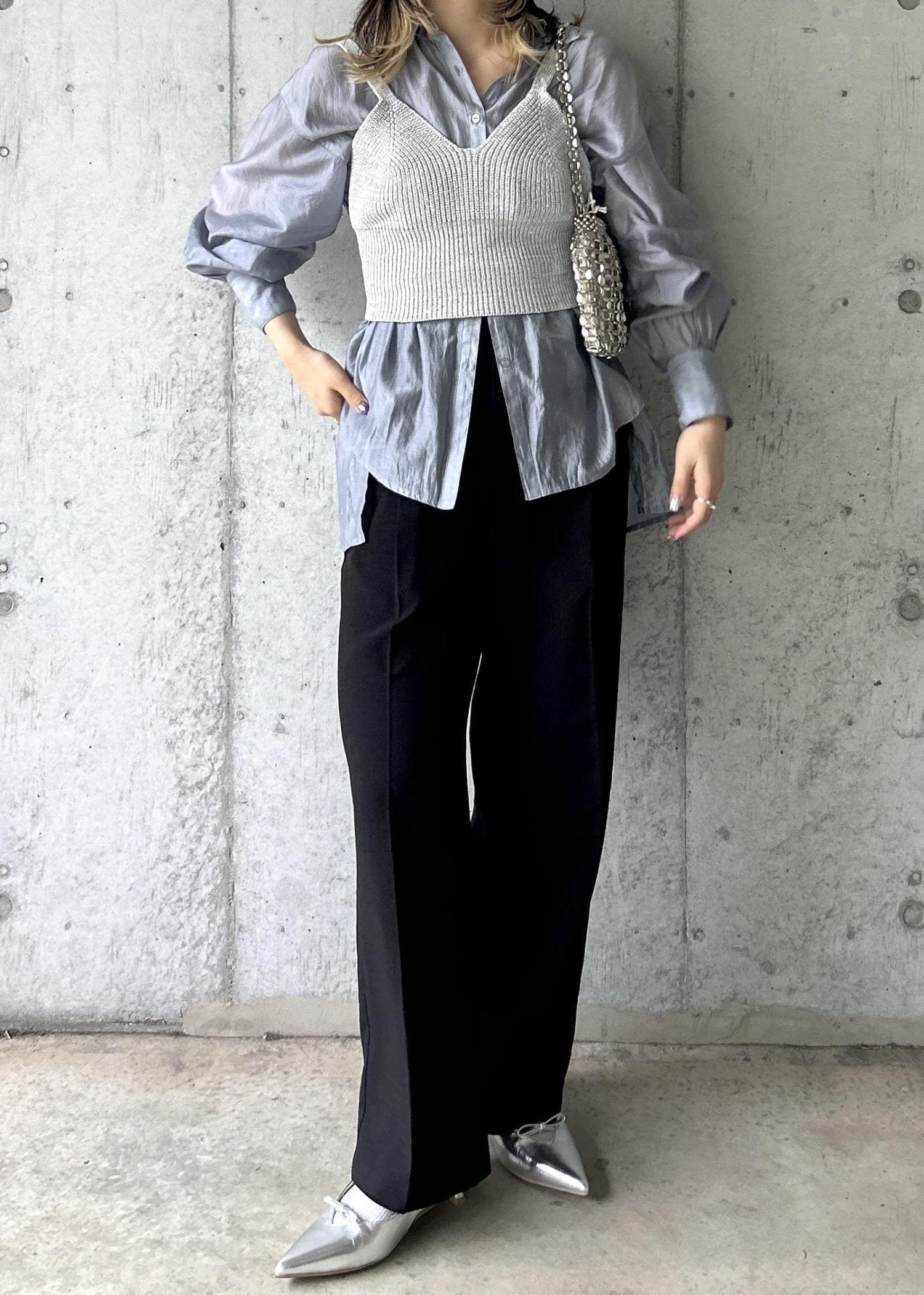 サイドに大きめのスリットが入っているので、前だけインして着用する時もシルエットが綺麗に着られました◎ -