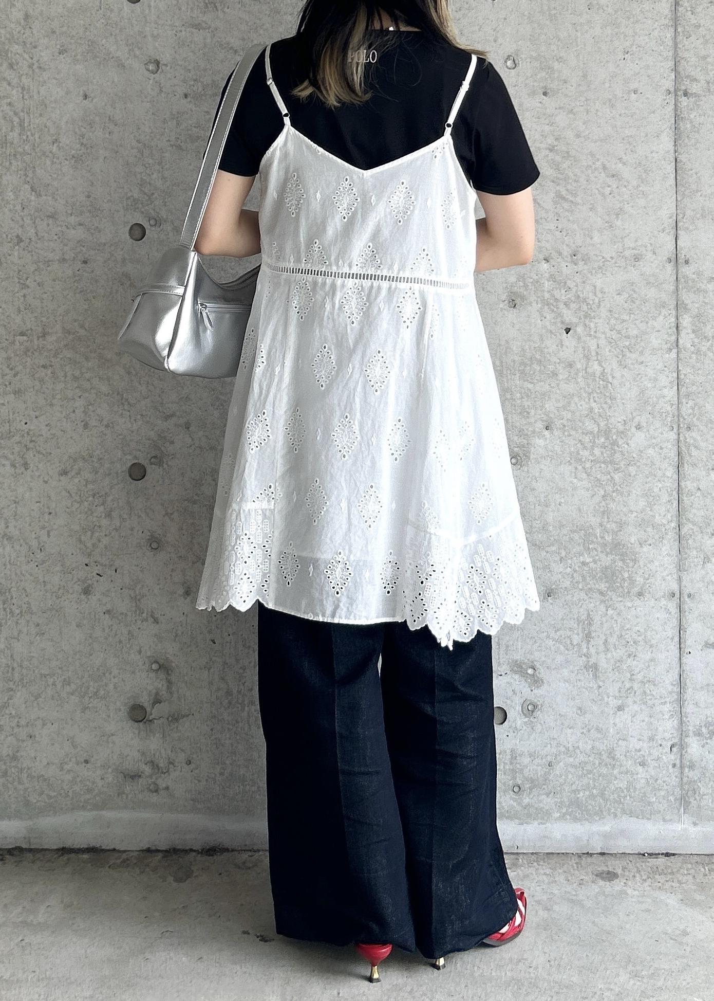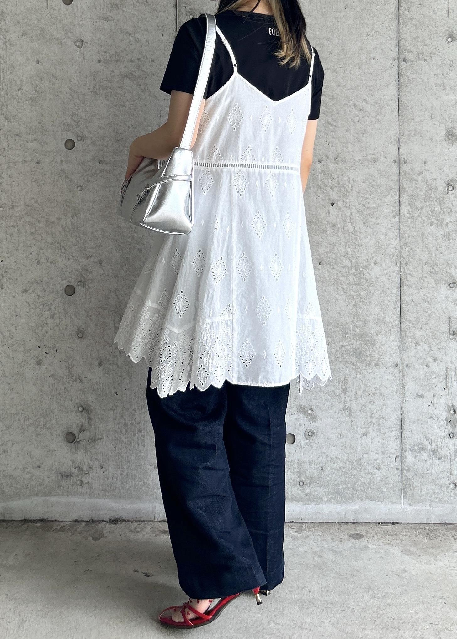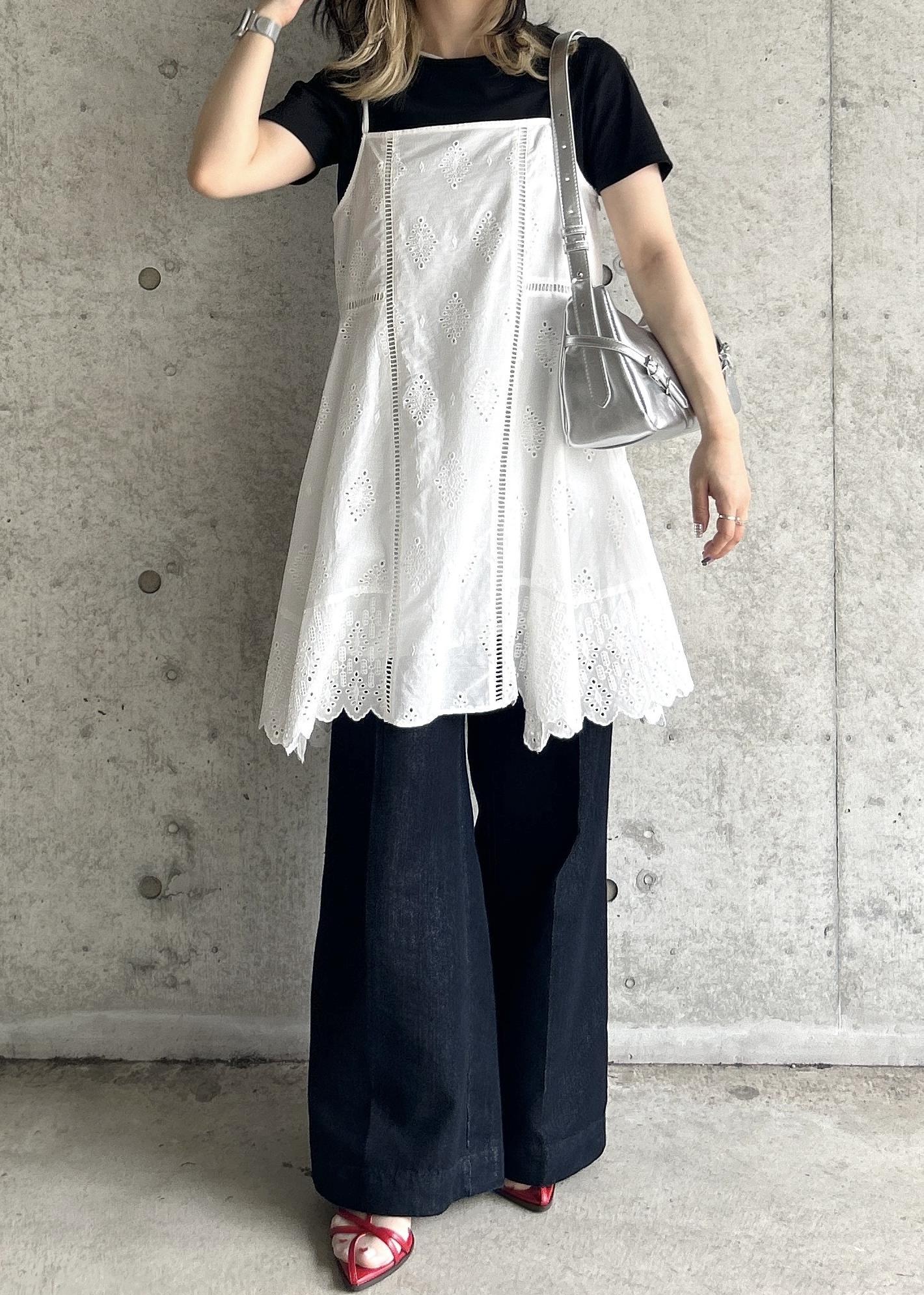 Tシャツ×キャミワンピはスタイリングが幼くならないようにヒール合わせで◎