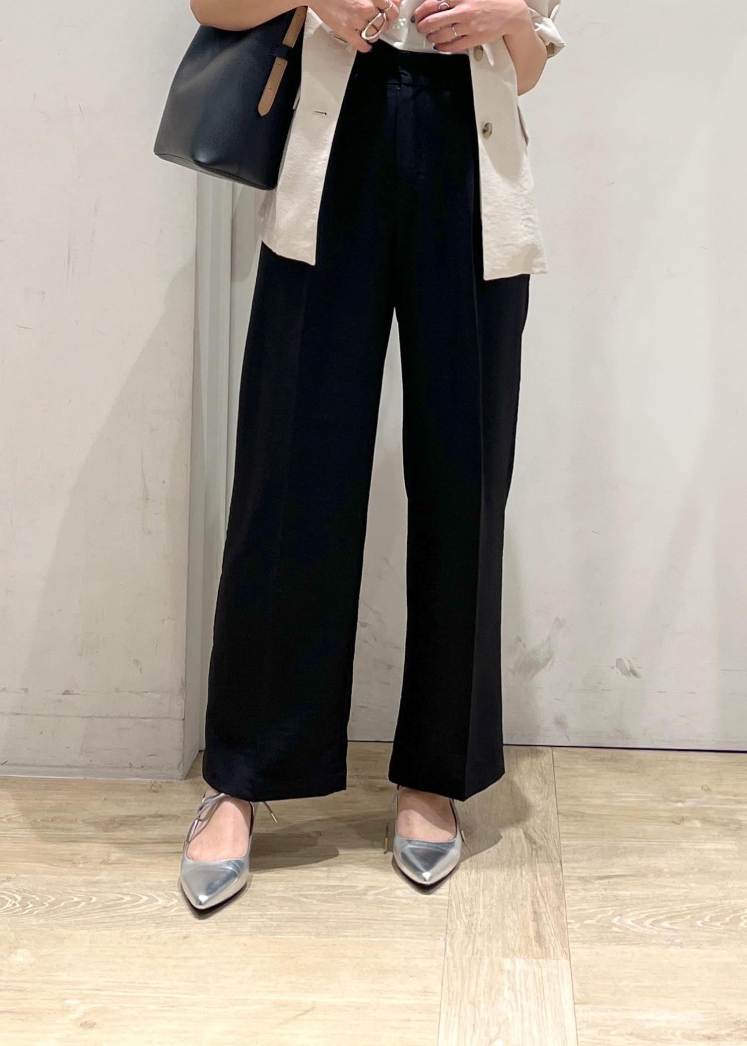 さらっとした着心地でシワにもなりにくくイージーケアの優れもの♪171cm/Lサイズ着用で足首がすこし見える丈感で、太もも周りなどはゆったり着れます。