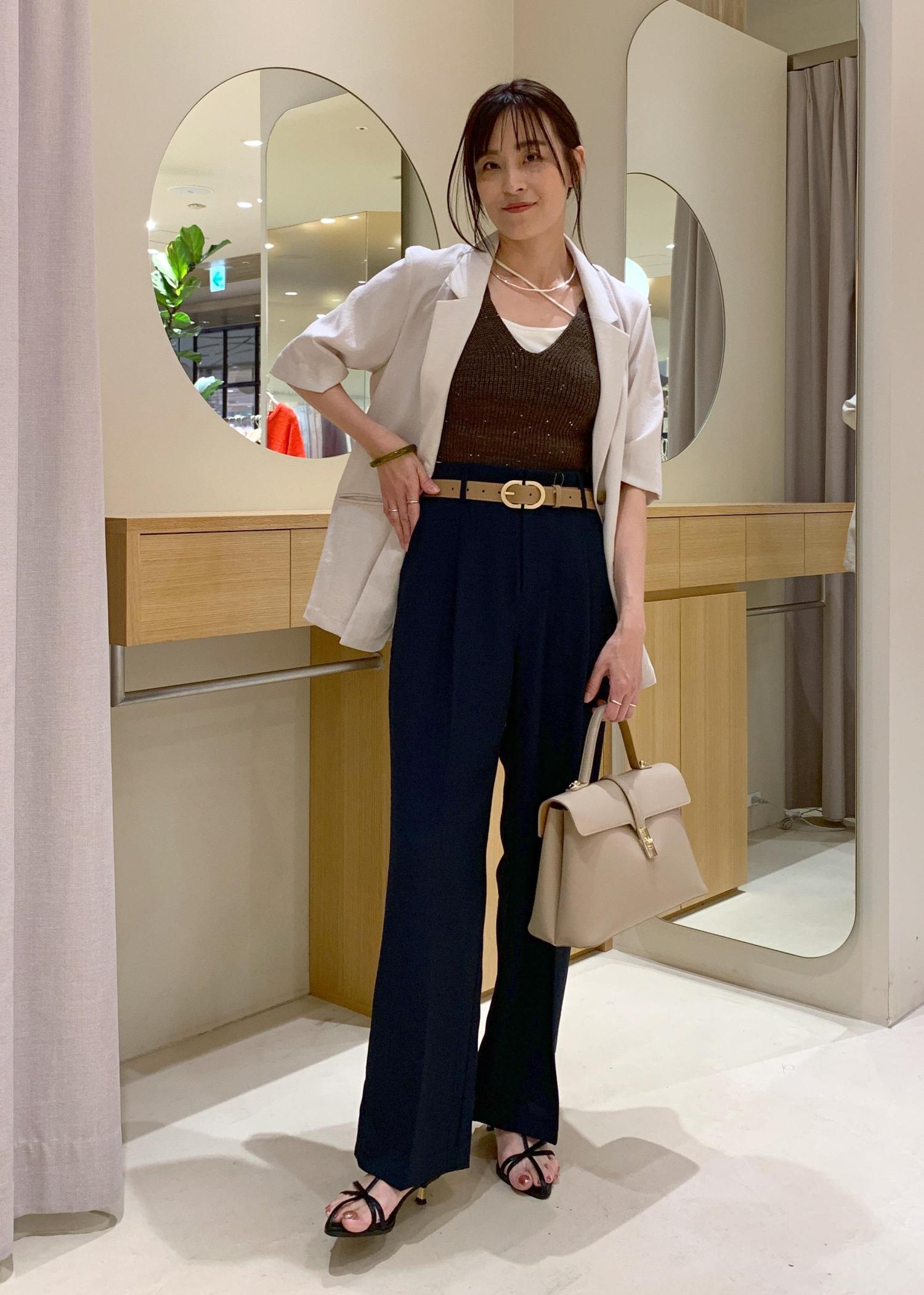 少し短丈ですのでおへそが見えそうになりますが、気になる方はボトムをハイウェストにしたり、シャツの上からレイヤードで重ねるスタイルがおすすめです。