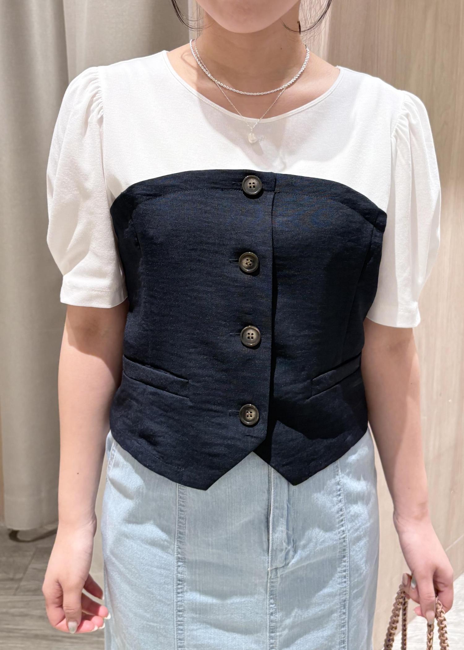 アウトレットVIS【新色追加】【美easy】釦ビスチェTシャツドッキングプルオーバー【接触冷感/洗える】ネイビー / F¥4,391レビュー1枚でオシャレに見せてくれるトップスです!ウエスト部分がスッキリしたデザインになっているため、細見えします。ビスチェ後ろはゴムになっているため、着脱も楽々です。
