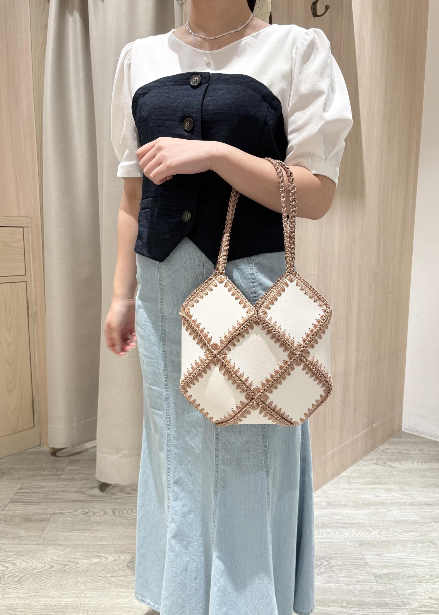アウトレットVISパッチワークバッグキナリ系 / F¥2,372レビュー大きすぎず、軽い作りでストレスなく持ち歩けます。白とベージュのデザインが大人っぽさを演出してくれますよ。