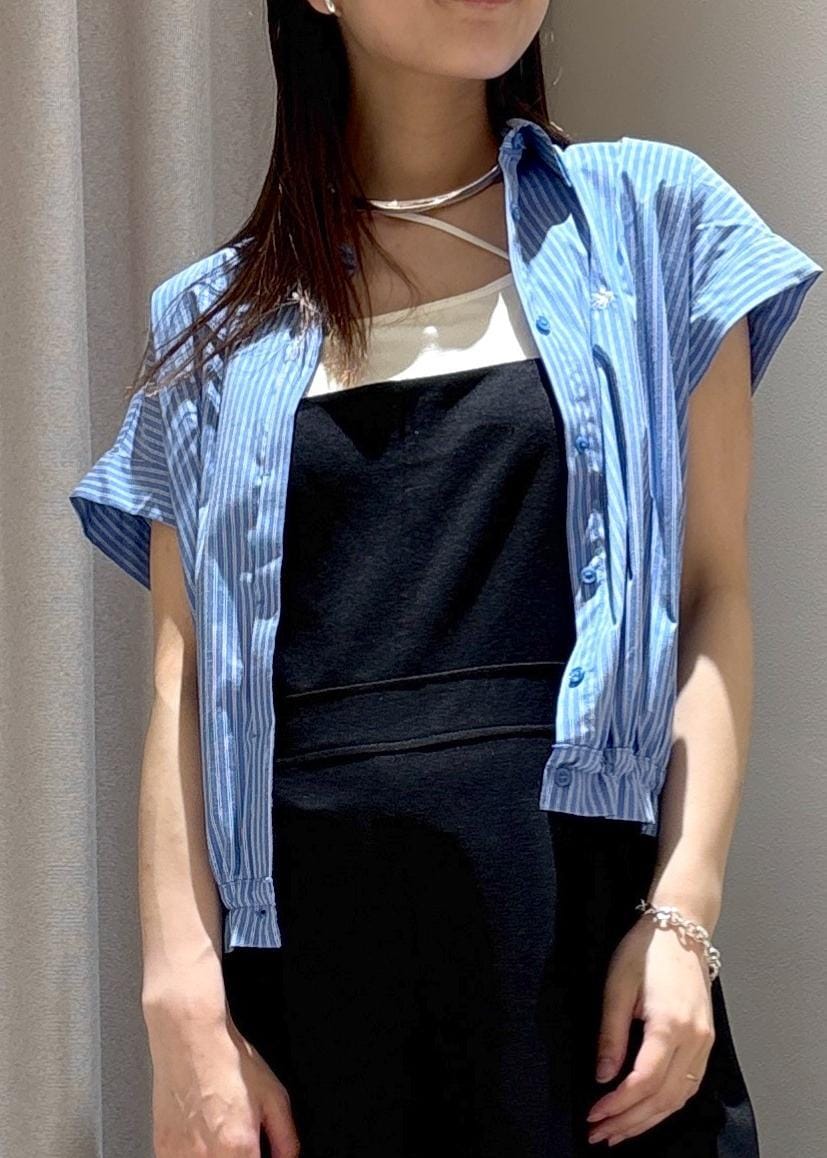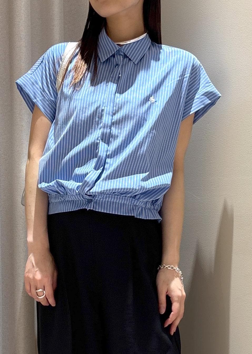 VIS【POLO BCS】VIS別注フレンチスリーブドローストリングシャツブルー / F¥6,050レビュー腰下あたりのバランスのとりやすい着丈です。