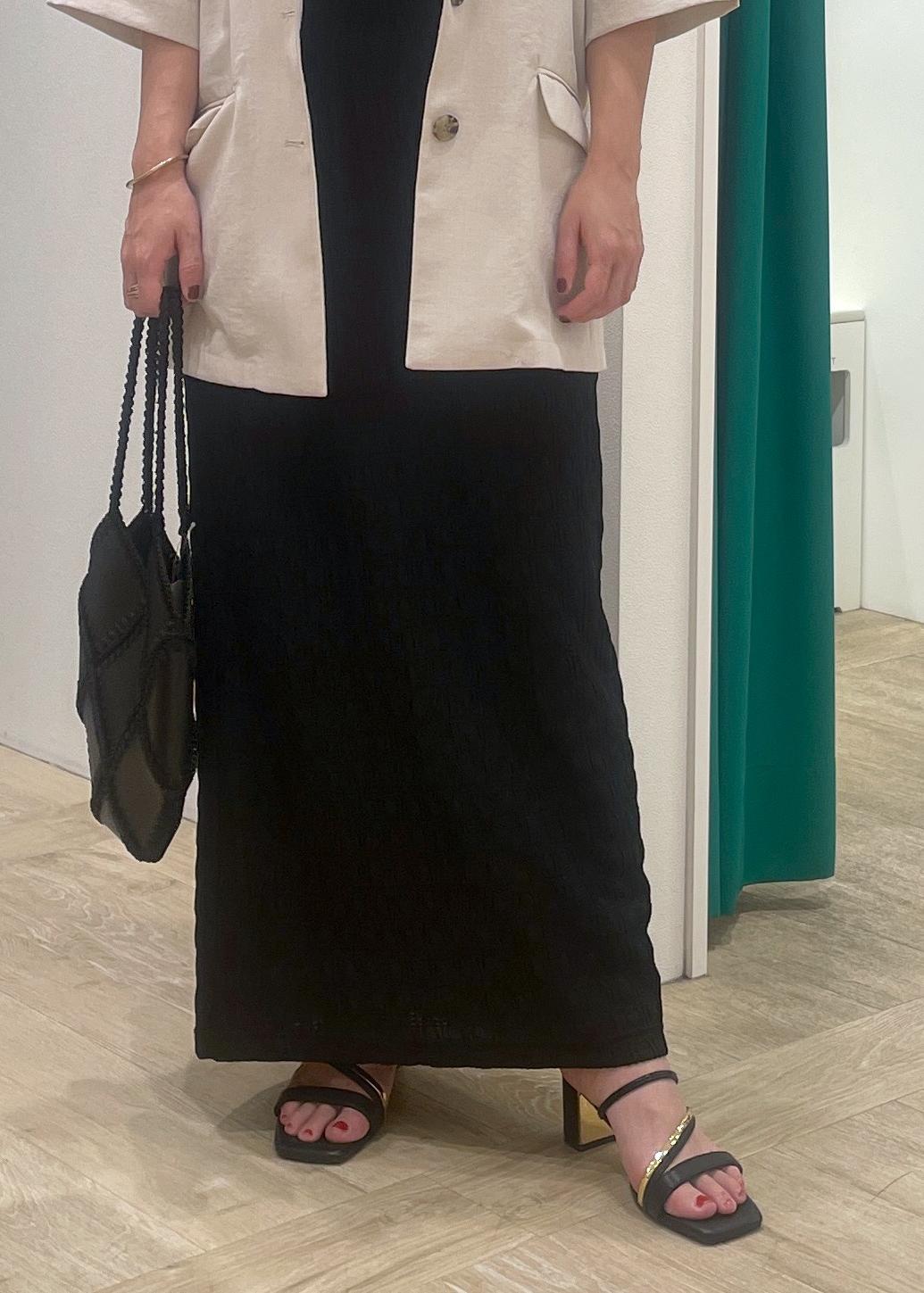 アウトレットVIS【新色追加】【接触冷感】膨れジャガードナロースカートブラック / F¥3,293レビューヒップ周りも目立たない万能スカートです。