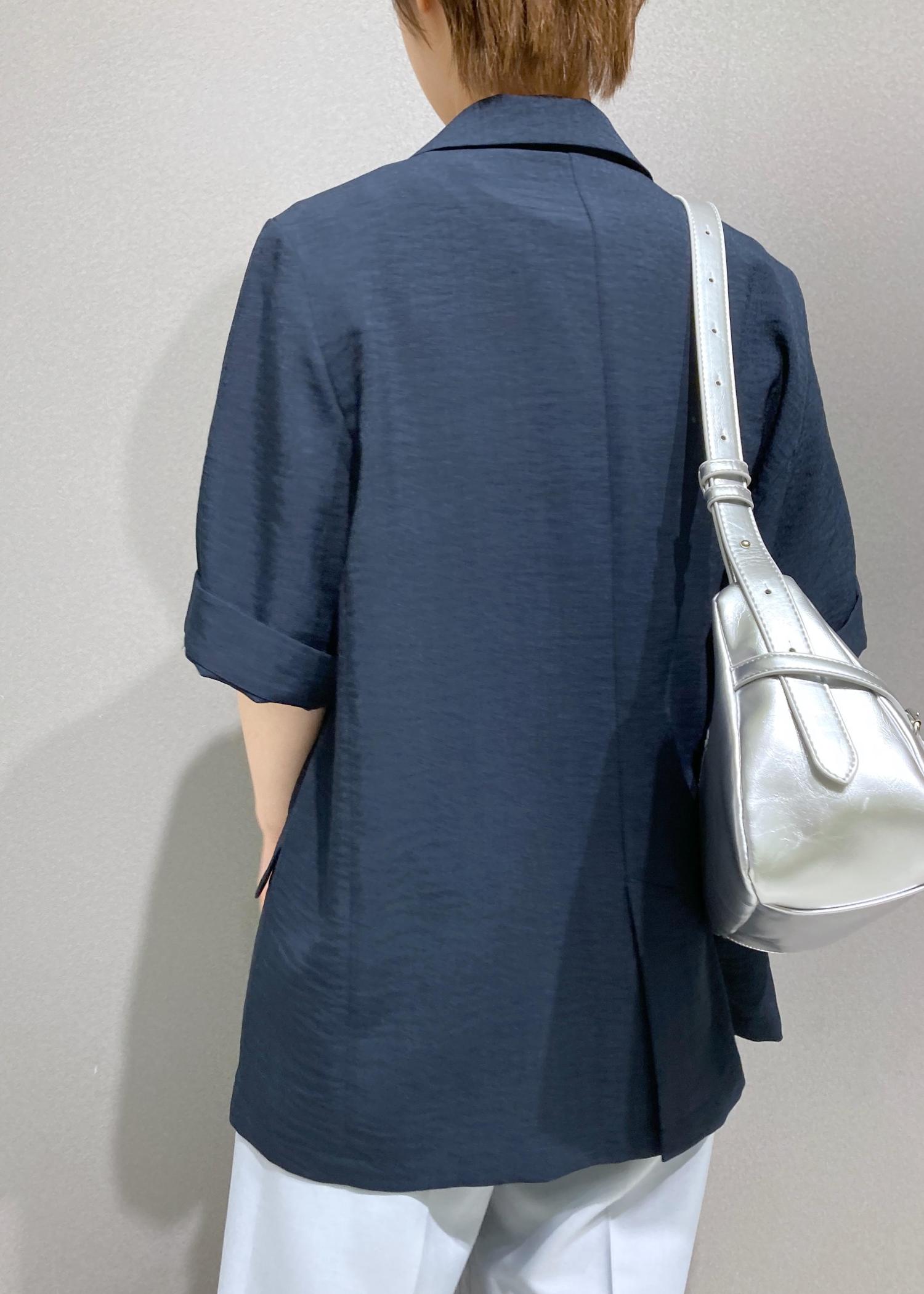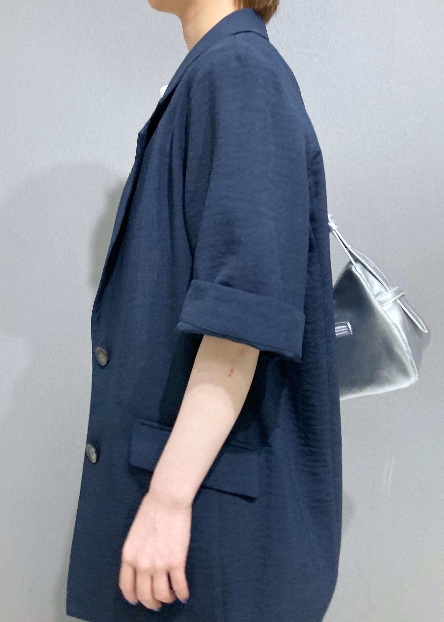 VIS【美easy】ハーフスリーブジャケット/セットアップ対応・洗えるネイビー / S¥7,909レビュー150cmでSサイズを着用してヒップが隠れる丈でした。