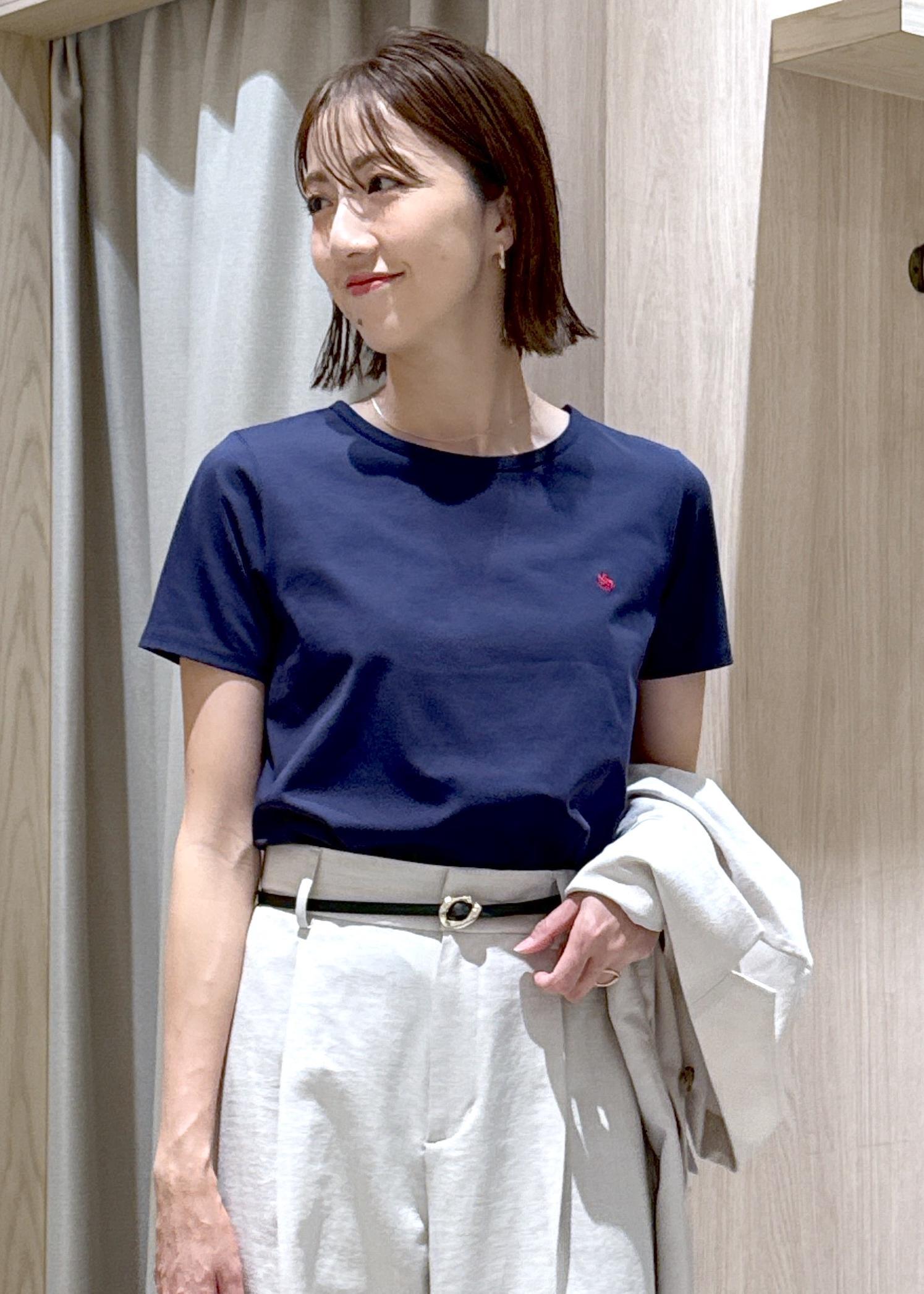 襟元も詰まり過ぎていないので女性らしいシルエットのTシャツです!