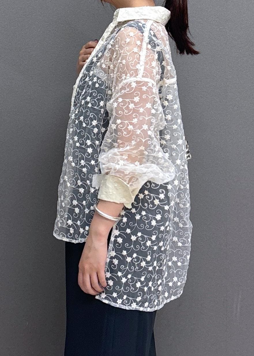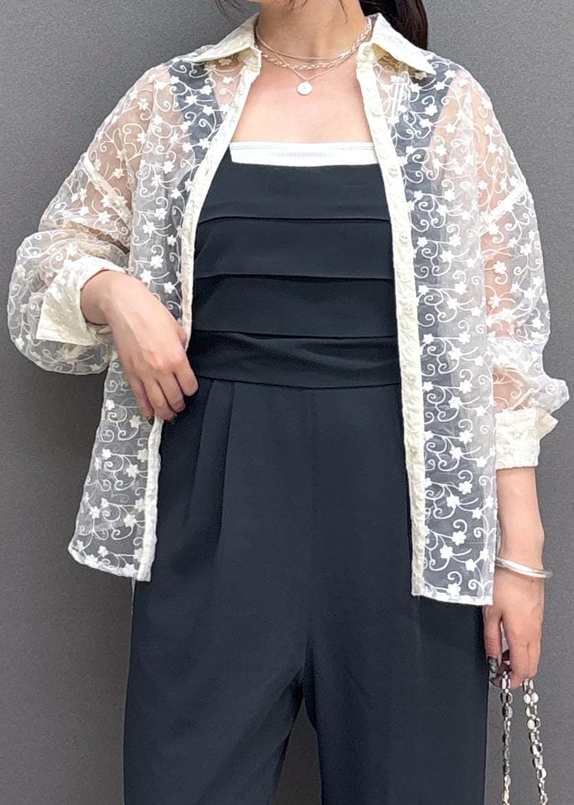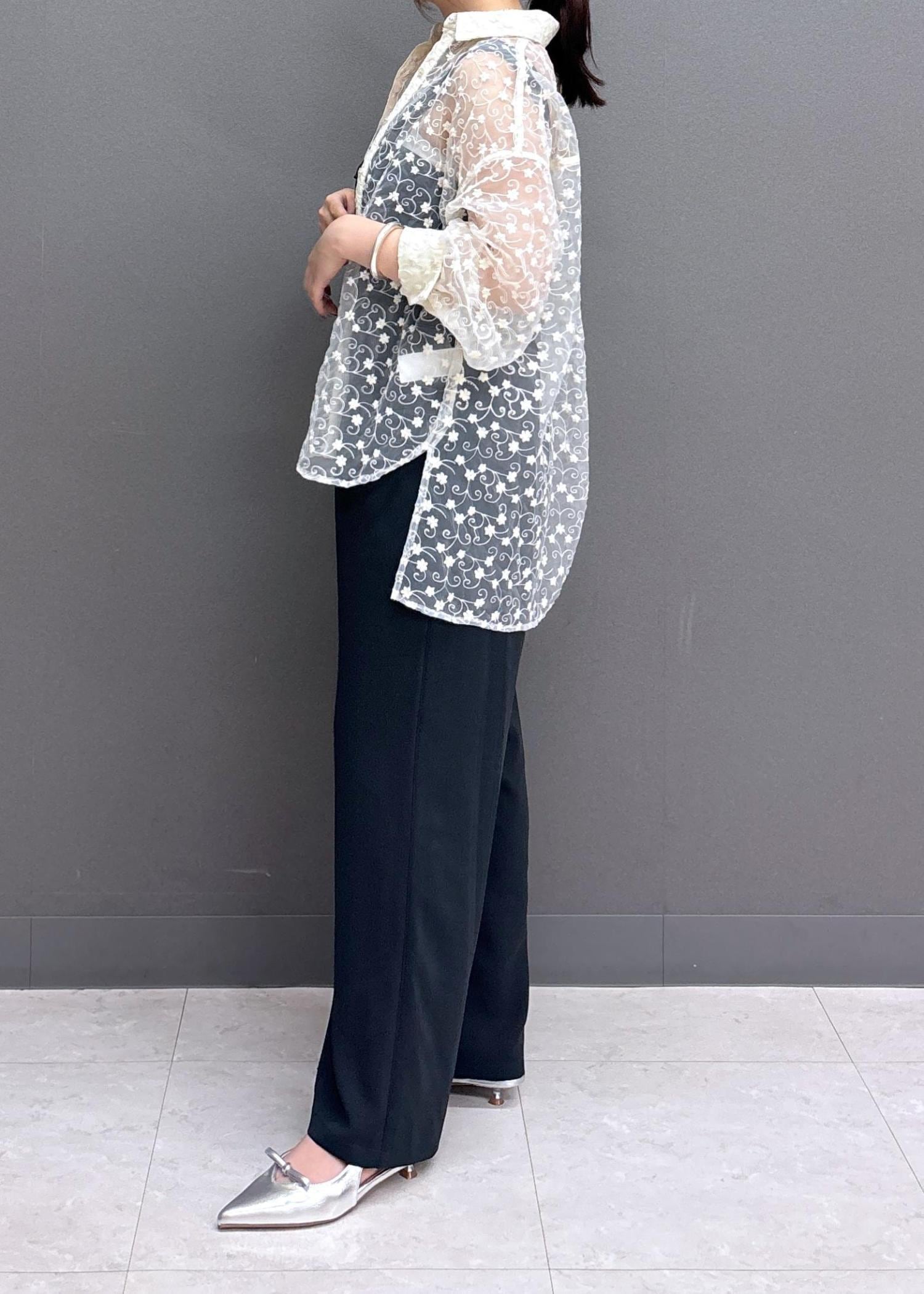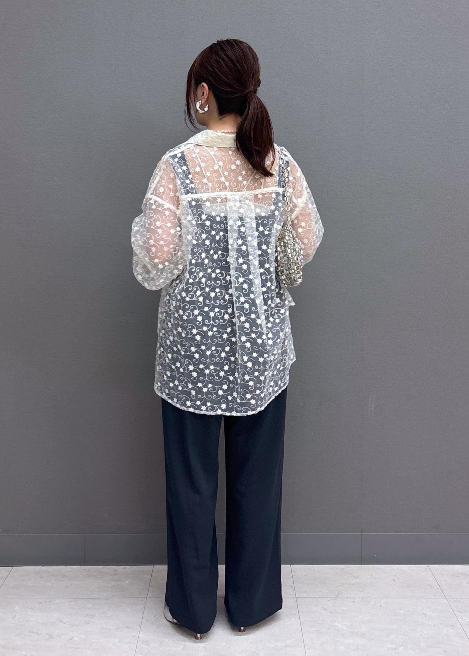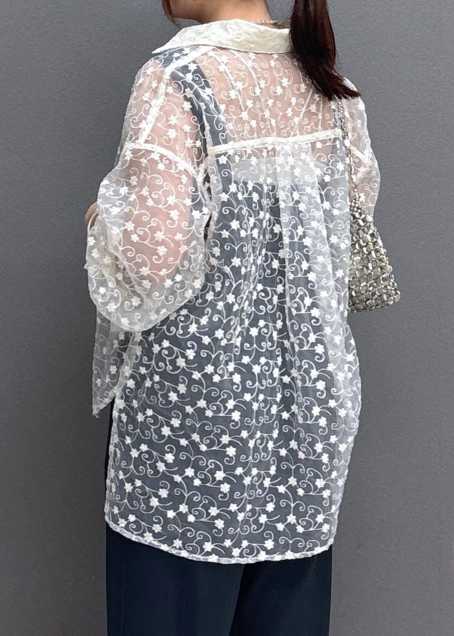 アウトレットVIS【洗える】アソートシアーシャツ(フラワー刺繍&無地)オフホワイト / F¥2,745レビュー前後差がある着丈で160㎝だと後ろはヒップまで隠れる長さです。全体的にゆったりとしたシルエットで安心感も◎さらっとした薄手の素材で軽い着心地です!