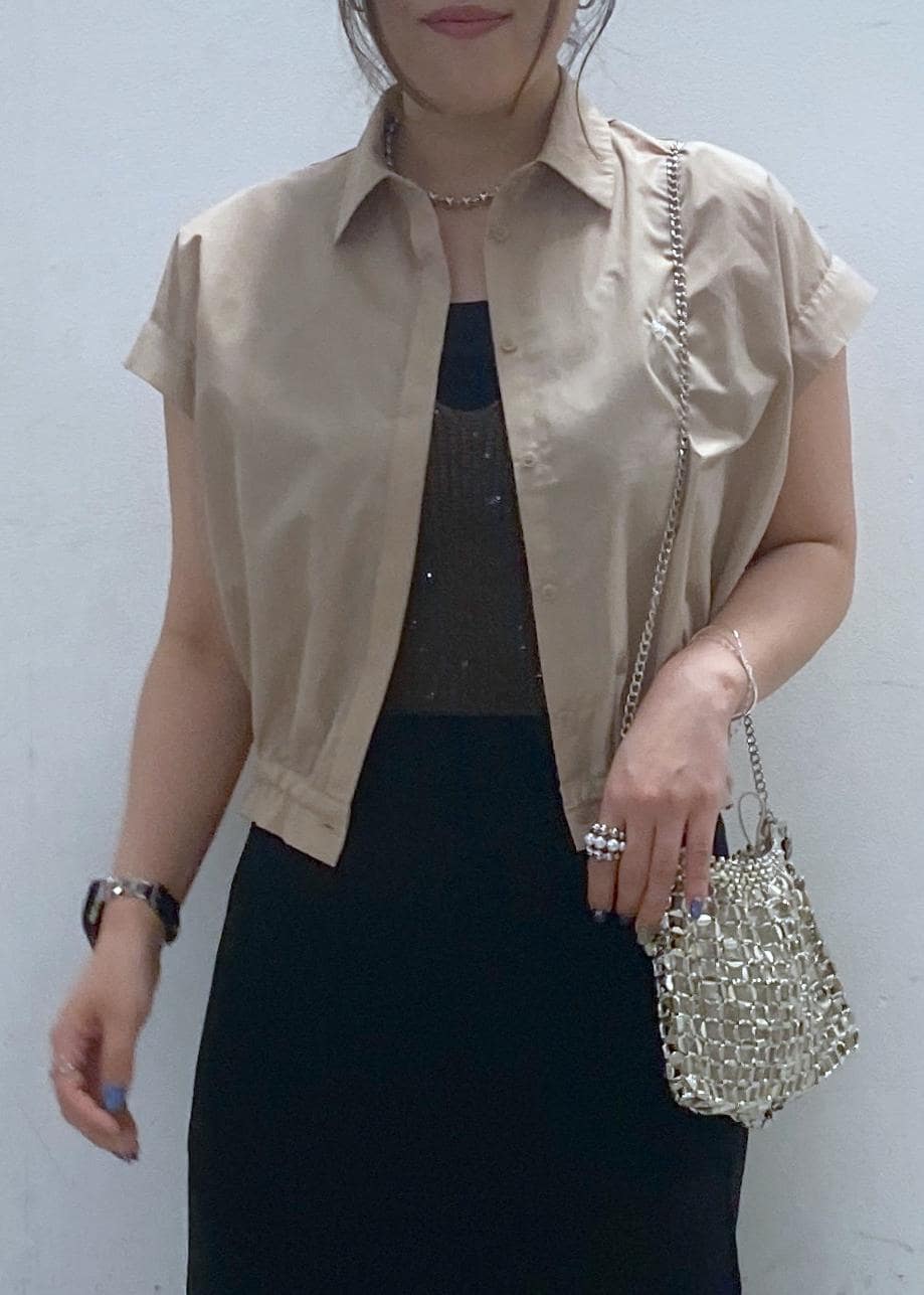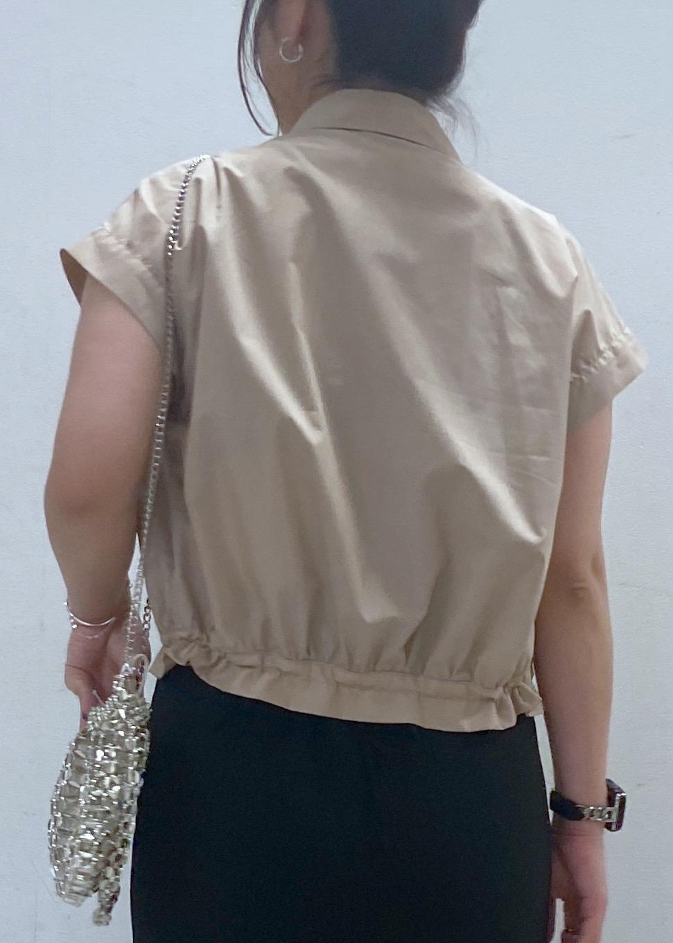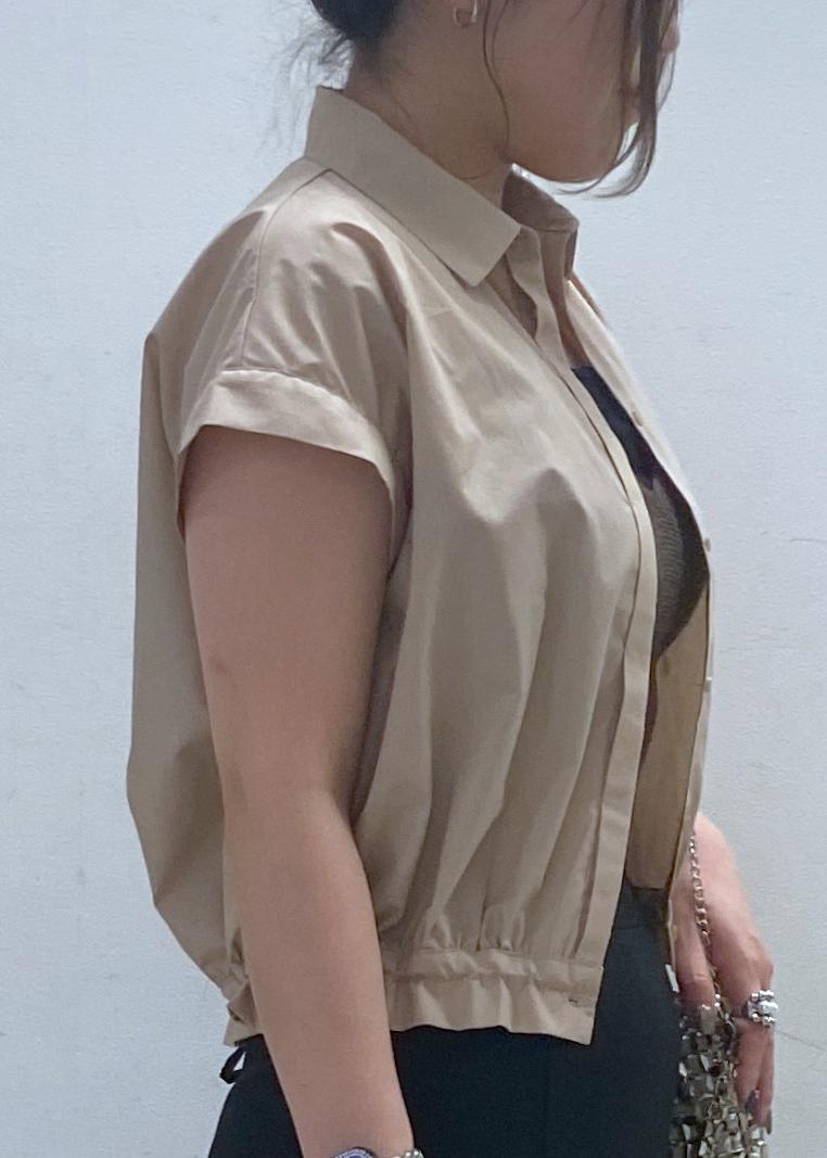 VIS【POLO BCS】VIS別注フレンチスリーブドローストリングシャツベージュ系 / F¥6,050レビューおへそが隠れるくらいの丈感なので、ワイドパンツなど広めなシルエットのボトムとの合わせもgoodです!
