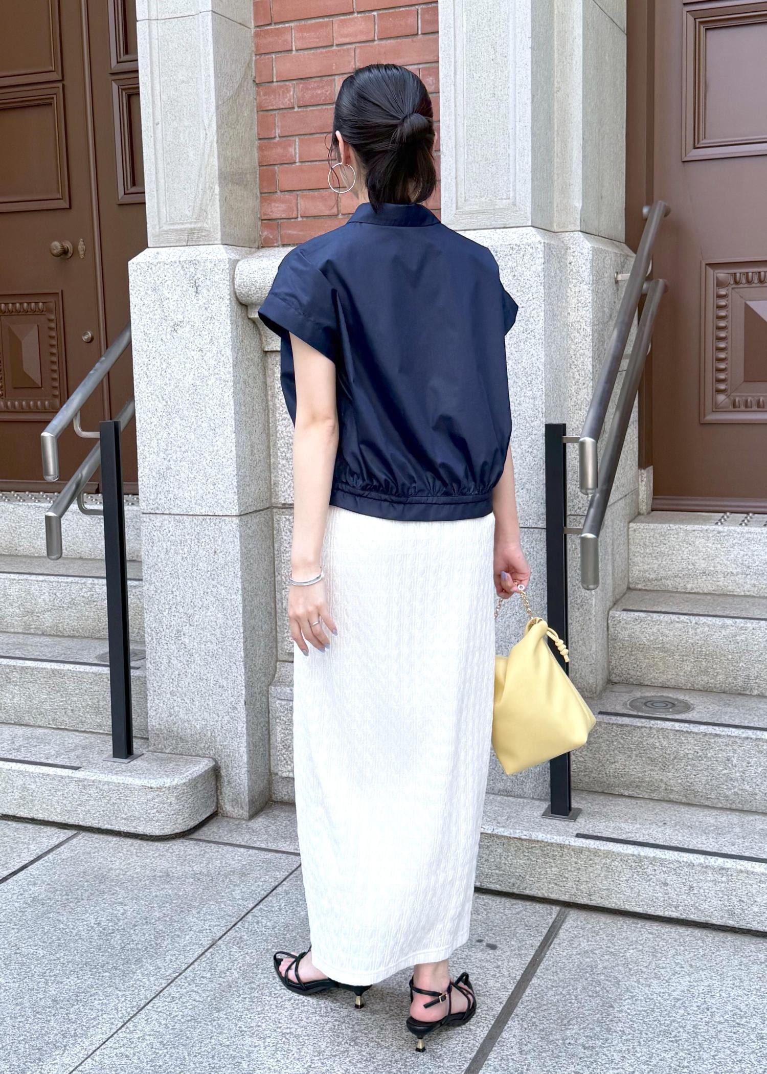 二の腕にかかるくらいのフレンチスリーブで、華奢見えします! -