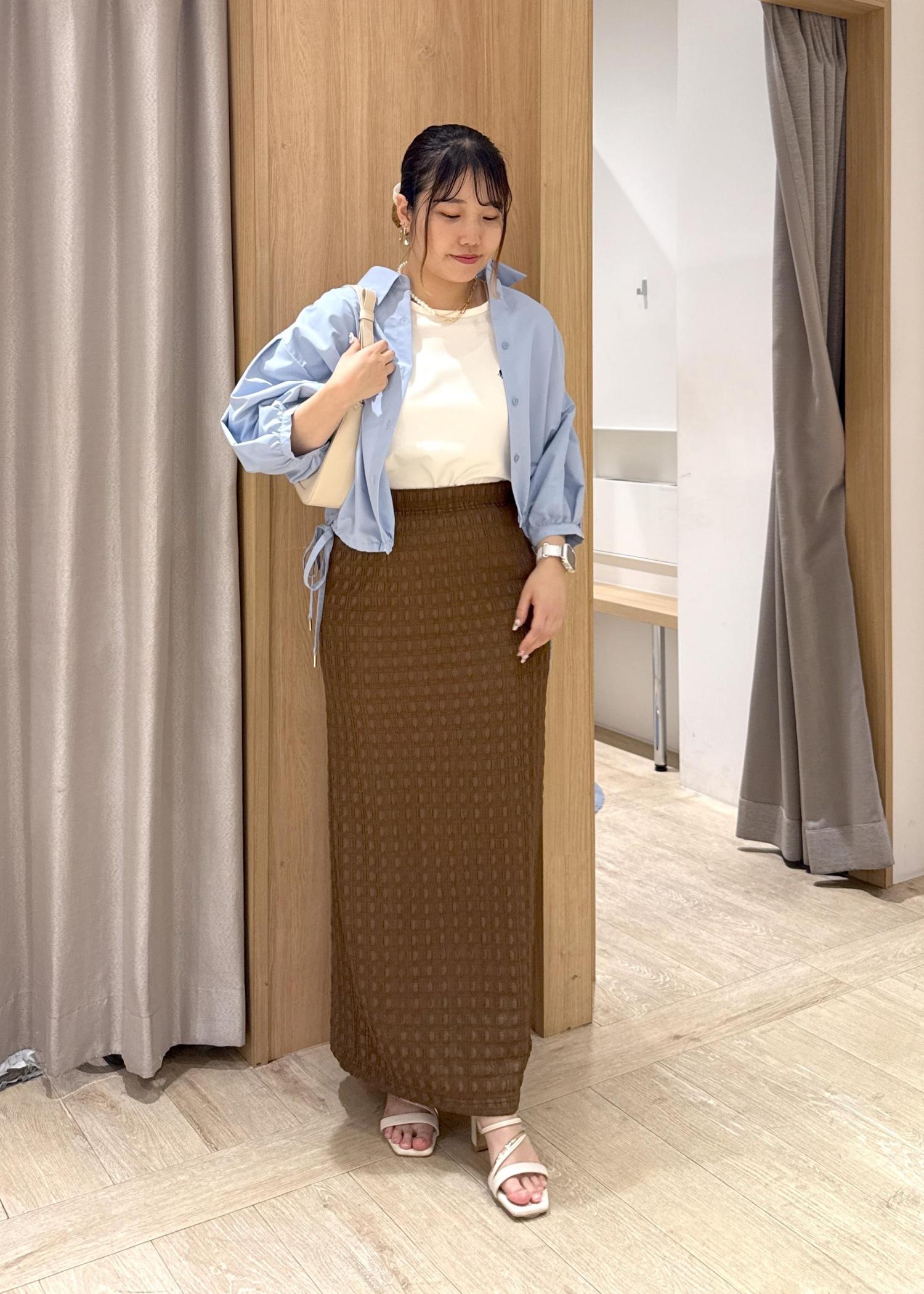 アウトレットVIS【新色追加】【接触冷感】膨れジャガードナロースカートブラウン / F¥3,293レビュー153cmの私ですが、くるぶしくらいの丈感でした。