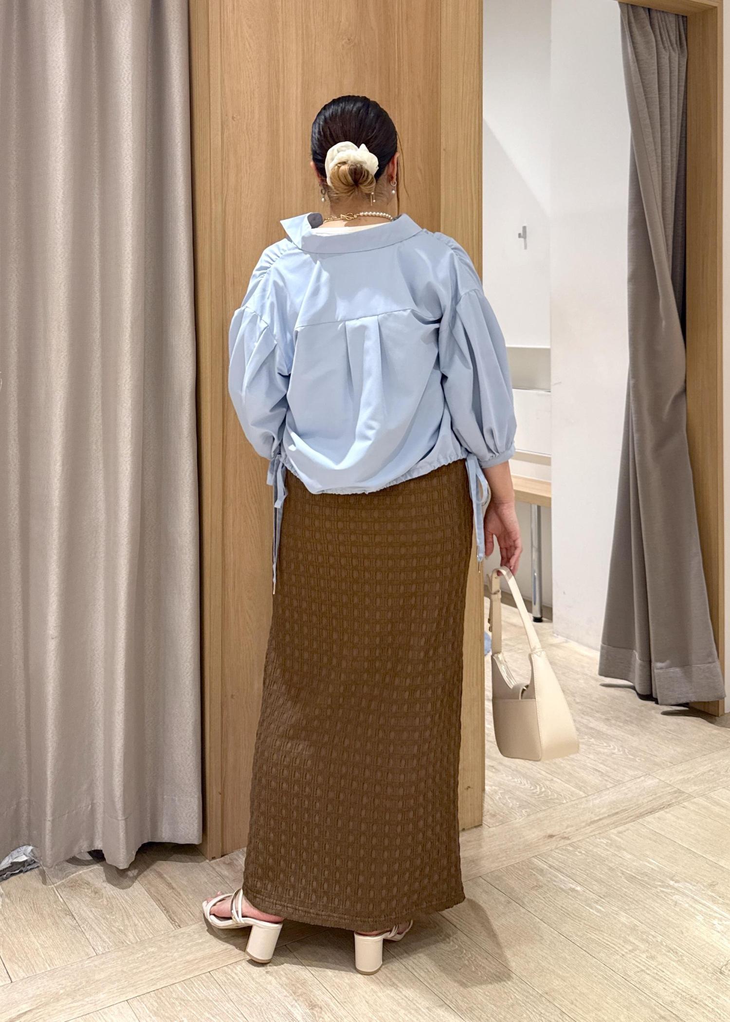 アウトレットVISドロストボリュームスリーブシャツ(レース・無地)サックス / F¥3,557レビュー153cmの私ですが、腰にかかるくらいの丈感でした。