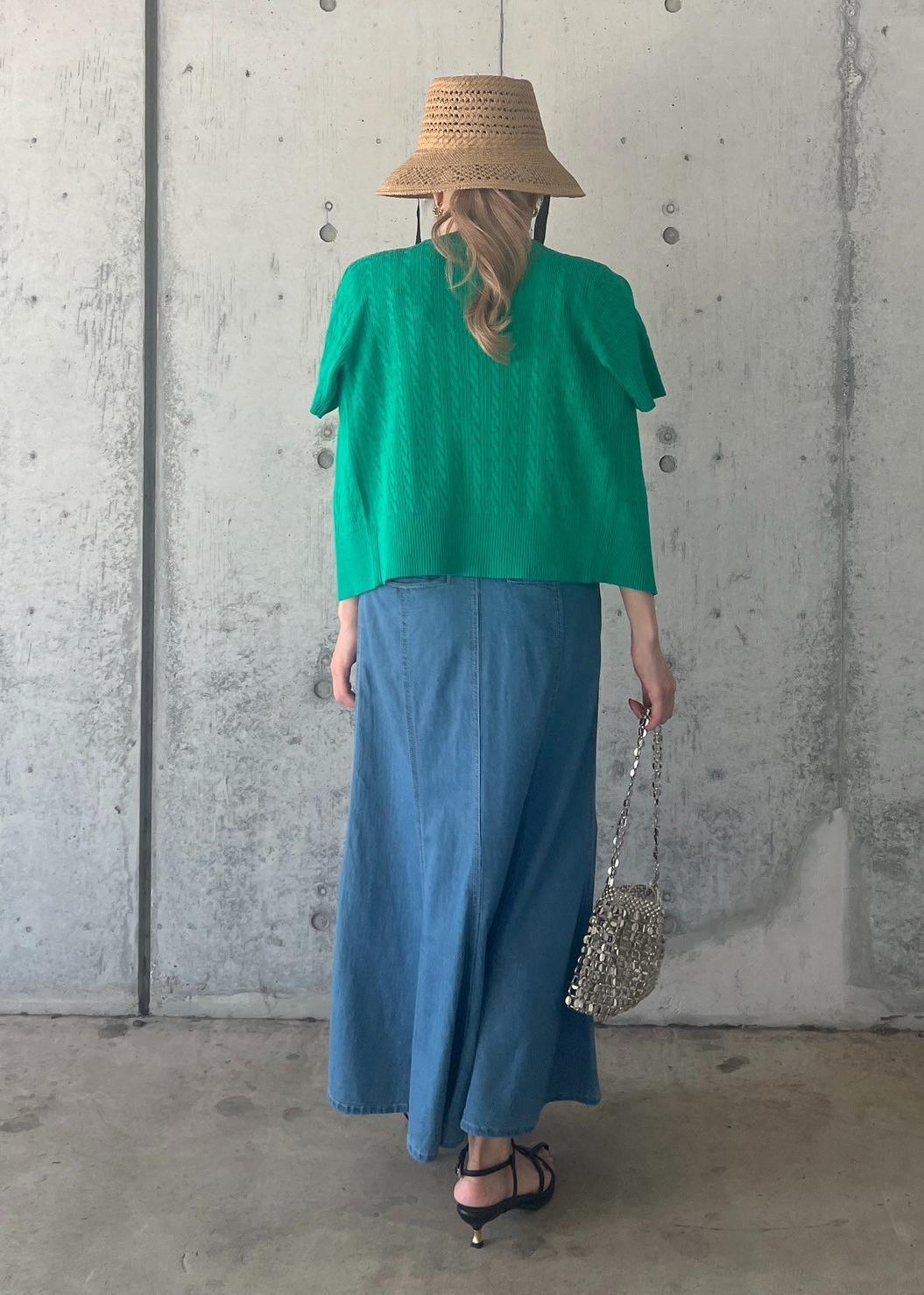 VIS【POLO BCS】VIS別注ハーフスリーブミニケーブルカーディガングリーン / F¥6,600レビュー身長154cmで着丈は腰にかかるくらいです。