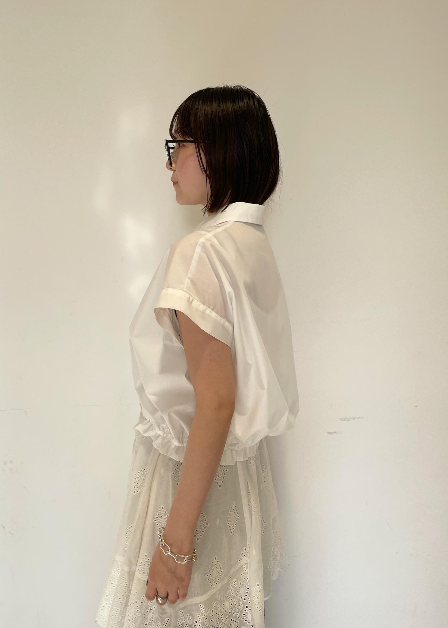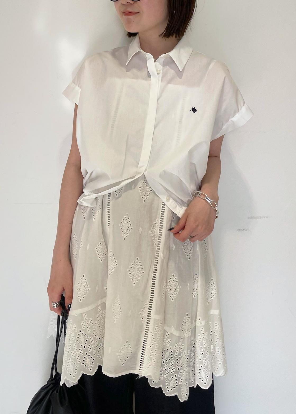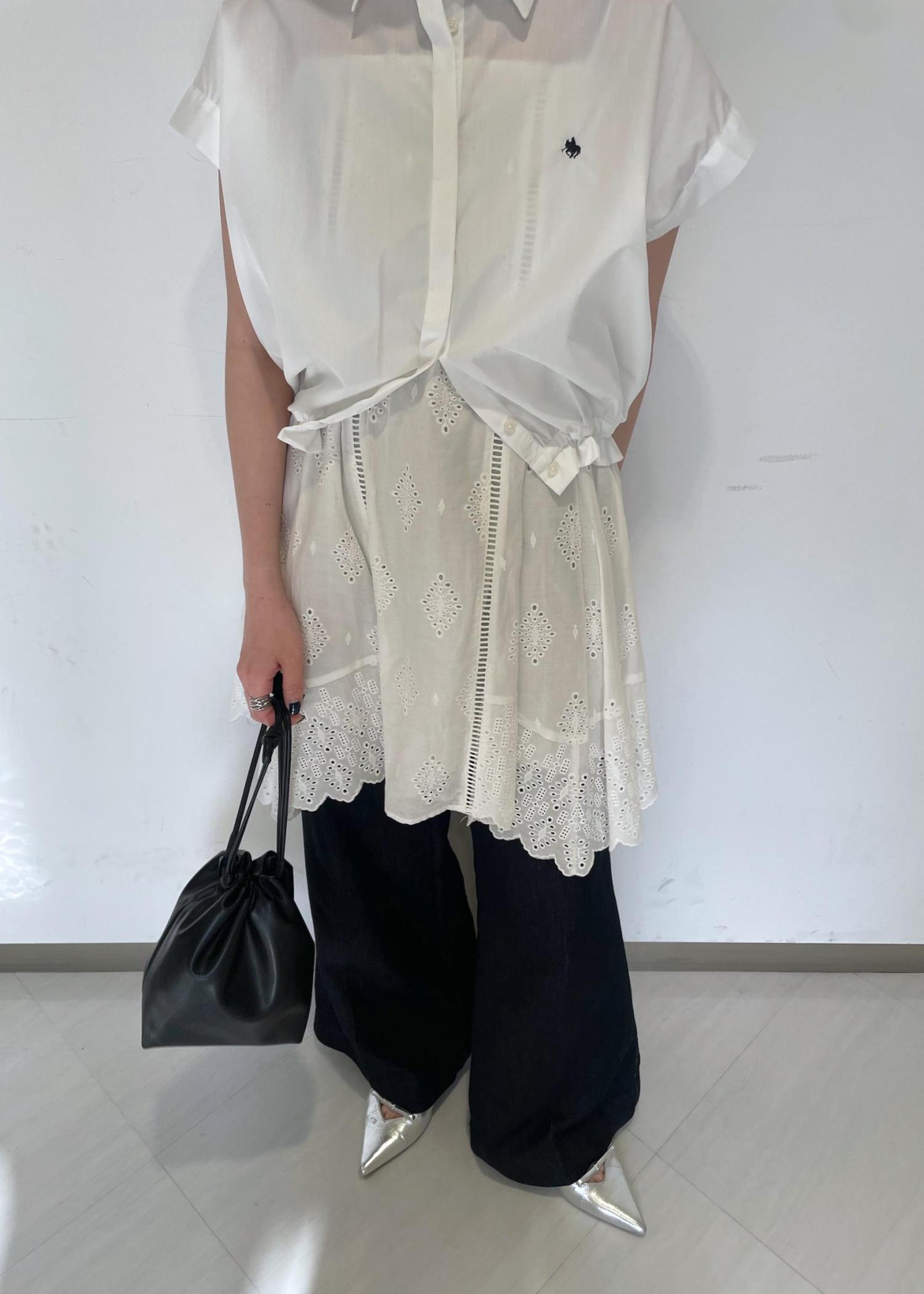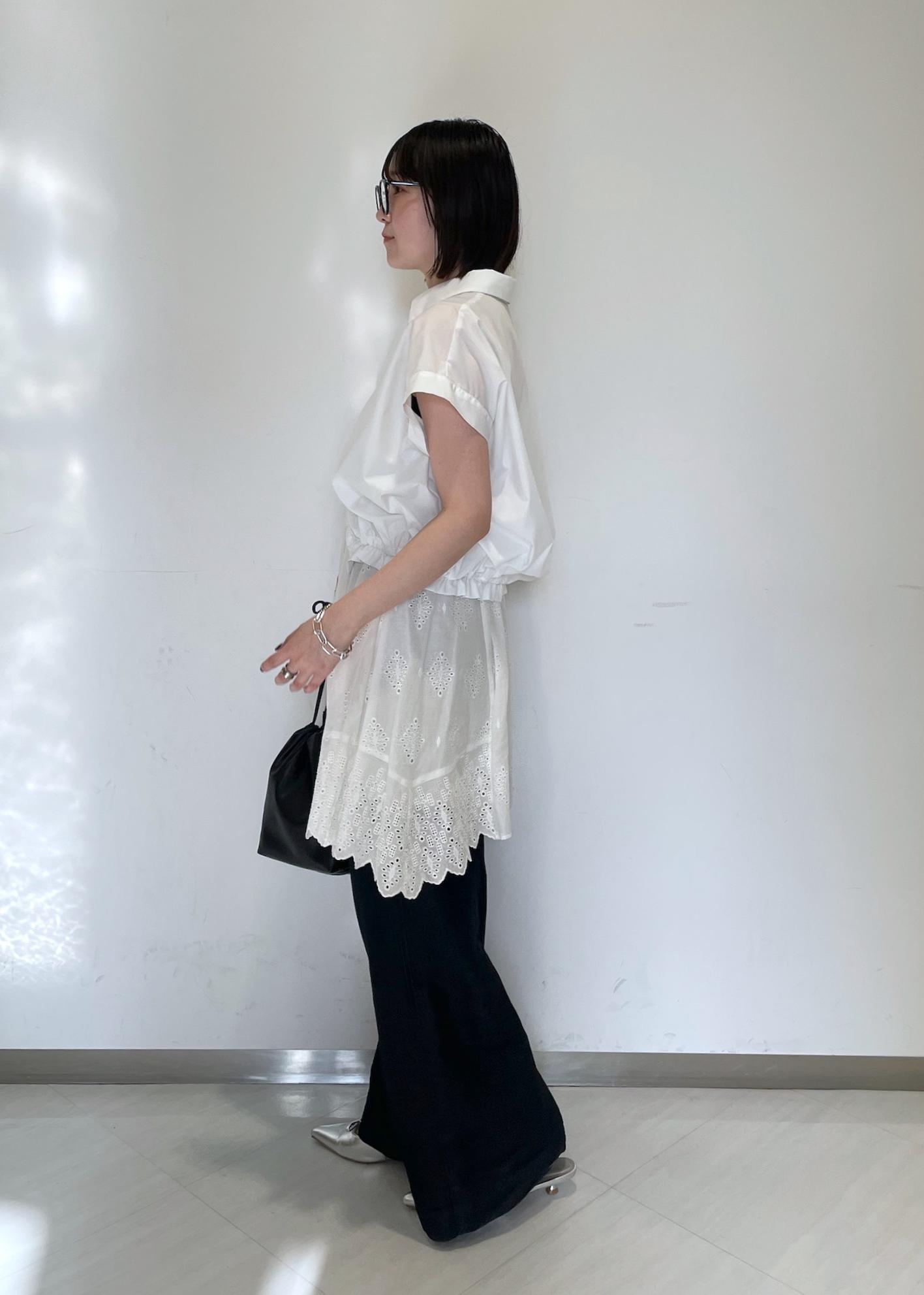普段フレンチスリーブは二の腕の太さが気になり苦手ですが、このシャツは袖の幅がワイドで肌離れするので逆に細見え効果があり着やすかったです! -
