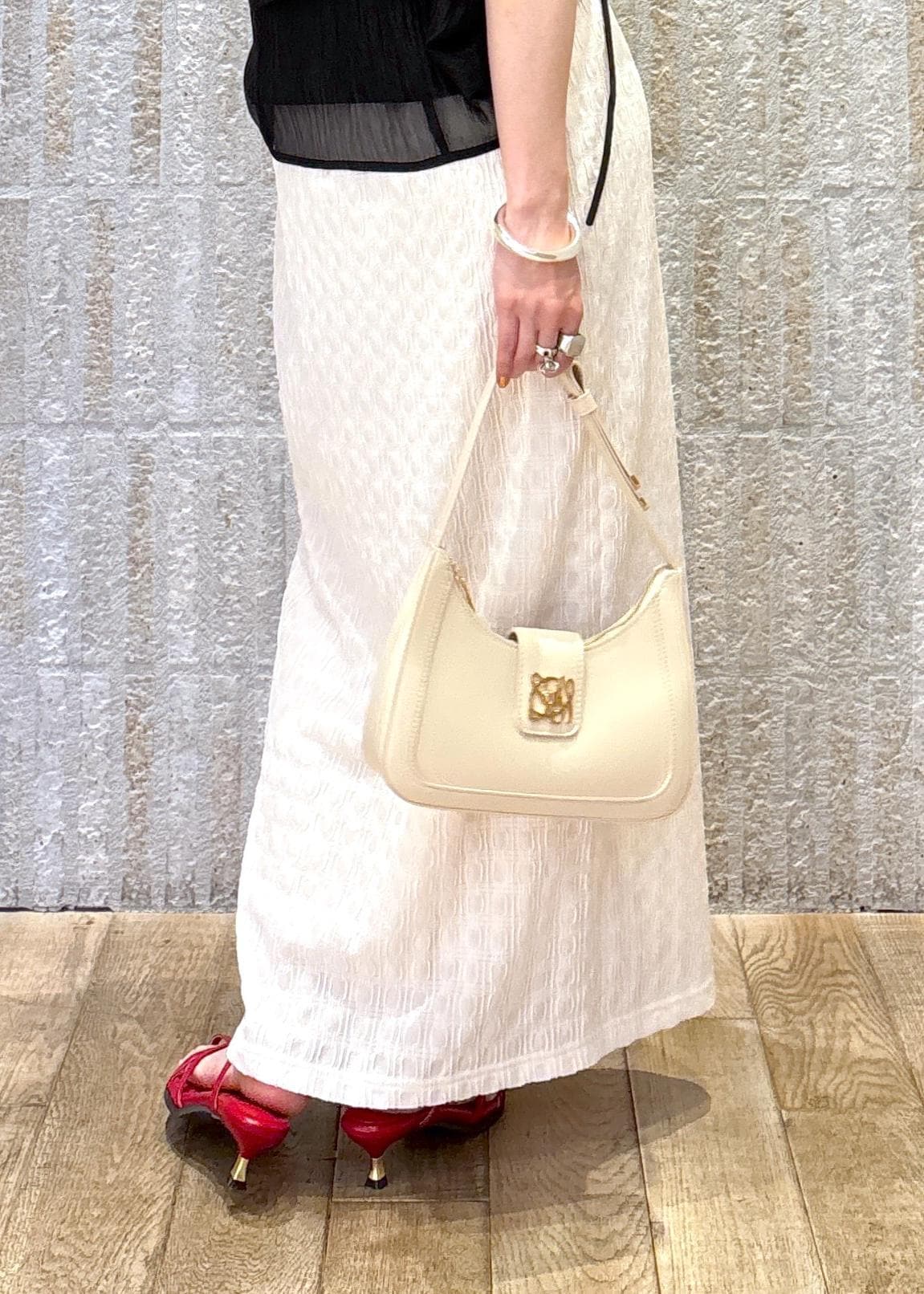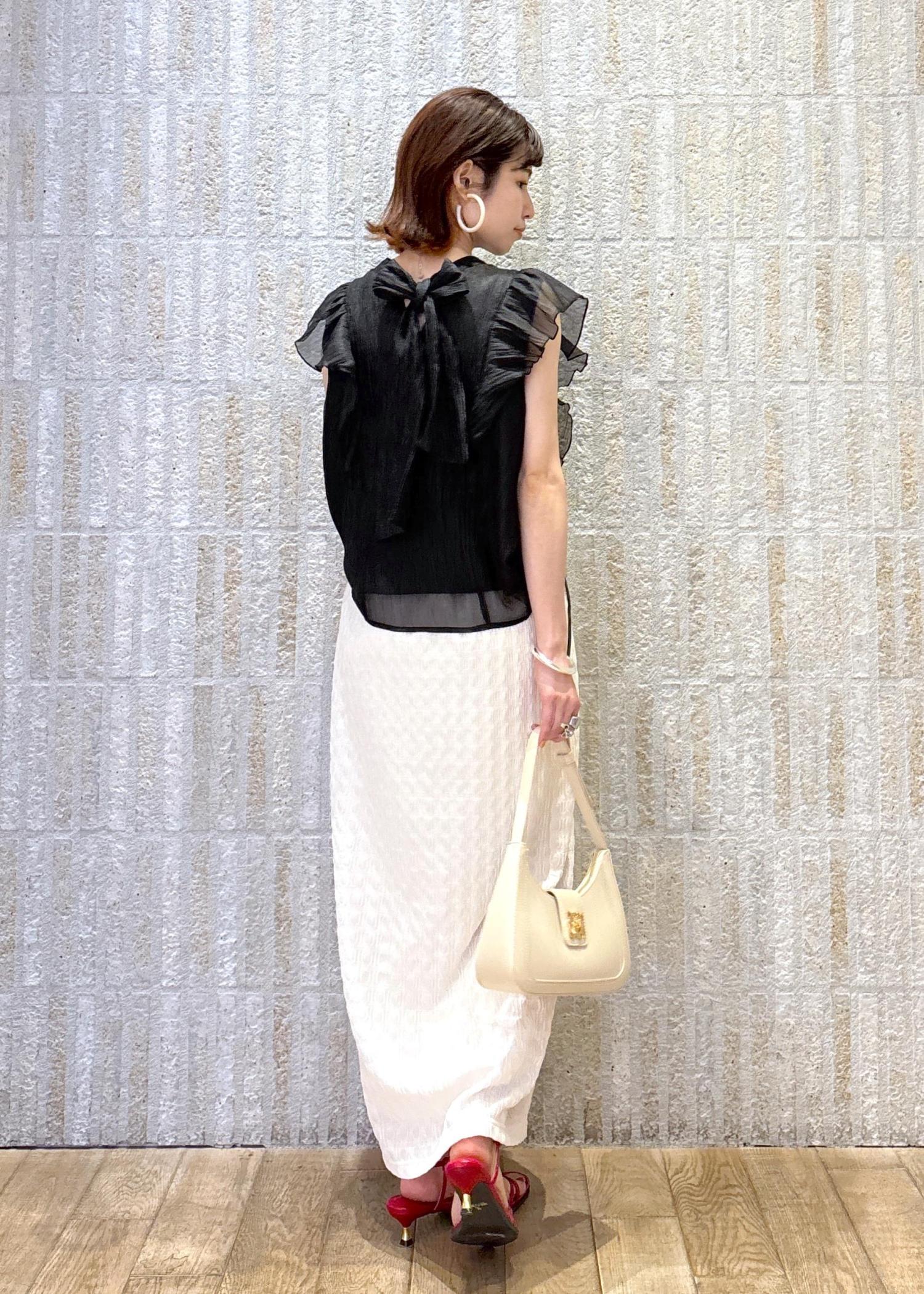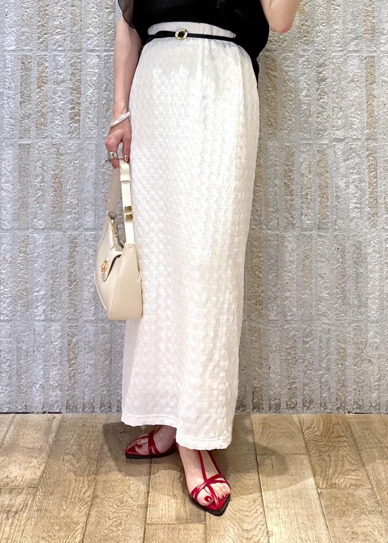 今回は白のタイトスカートとヒールサンダルできれいめカジュアルスタイルにまとめました。
